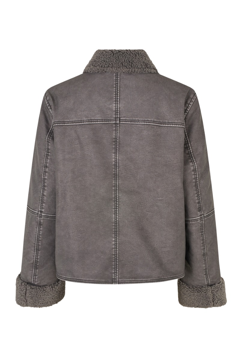 En virkelig cool jakke fra mbyM er landet! Denne jakke har udtryk af en læderjakke, men er samtidig foret med det blødeste fór, så du er sikker på at holde varmen! Jakken er en lille smule cropped, har lommer foran og lukkes med en sej, forskudt lynlås. Denne jakke kan styles virkelig fedt til ethvert outfit!