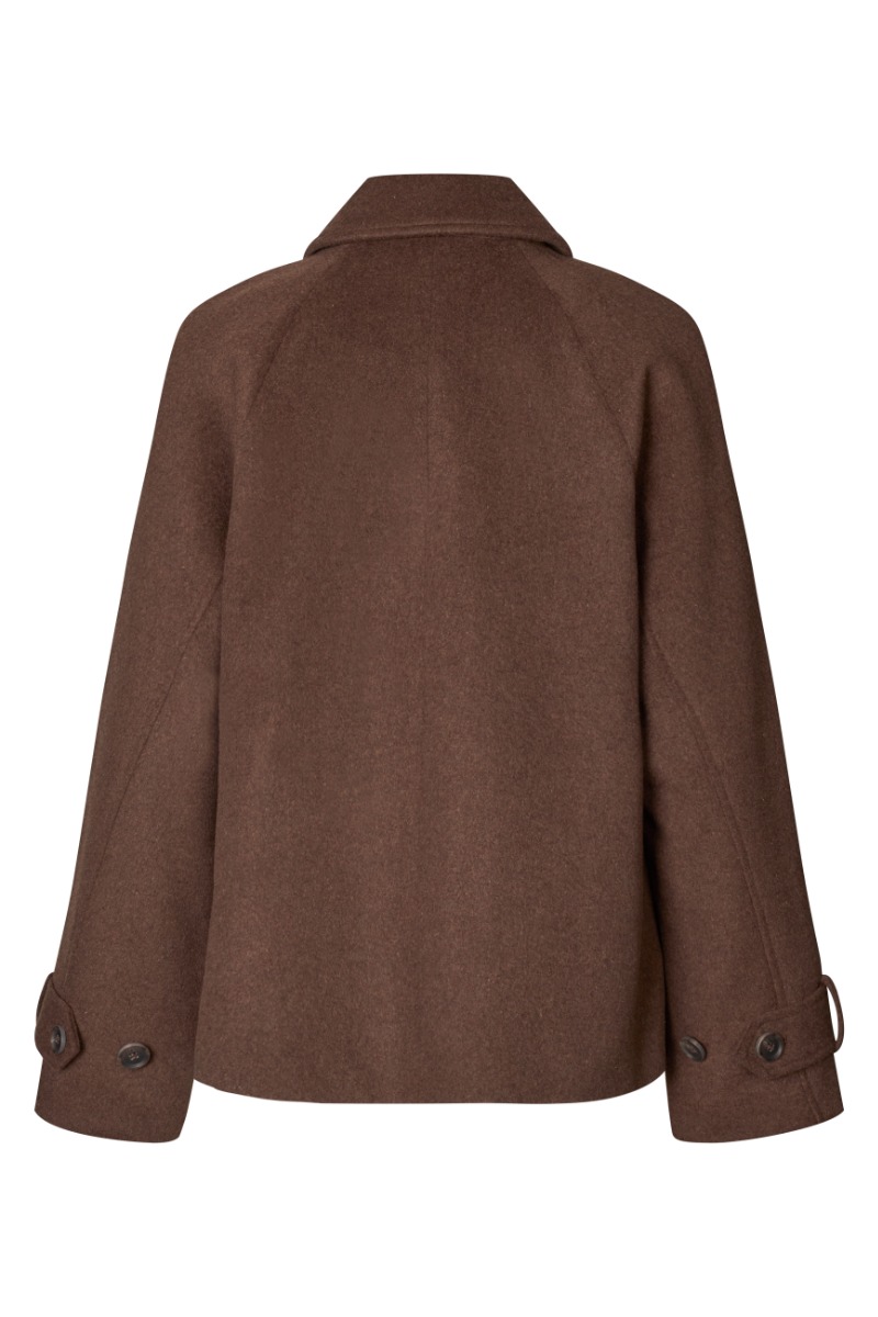 Klassisk jakke fra mbyM. Denne jakke har en lækker kvalitet og et simpelt design. Jakken har skjult knaplukning foran, krave og et lige snit forneden.