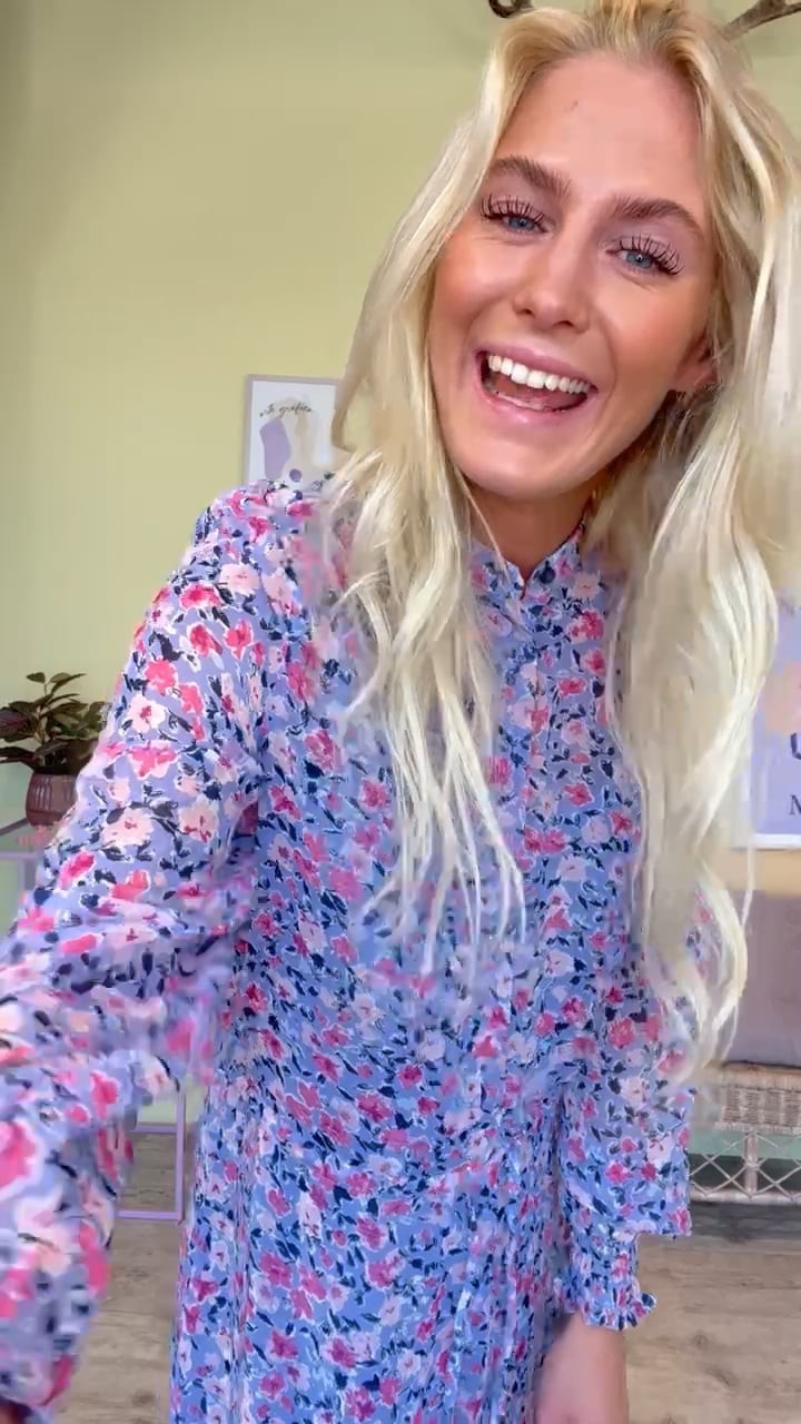 Den populære Diaz model fra mbyM, som vi ved mange af jer elsker ligeså meget, som vi gør! I fint lilla print med små blomster i rosa og pink nuancer. Kjolen kommer med en løs underkjole, og overdel med tyndt bindebånd i taljen og smockeffekt ved ærmekanten. Kjolen er med knapper fra hals til talje, hvilket går den ammevenlig til dig, der søger det, hvis du undlader underkjolen.