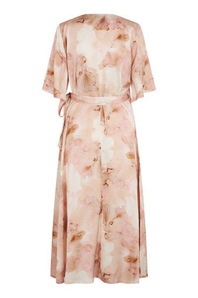 En fin kjole fra mbyM er kommet i et smukt rosaprint. Det er en slå-om model og derfor nem at bruge som ammevenlig kjole. Den er lang i modellen og falder smukt med den lette kvalitet. Den kan nemt bruges til stiletter eller til en god sandal til hverdag.