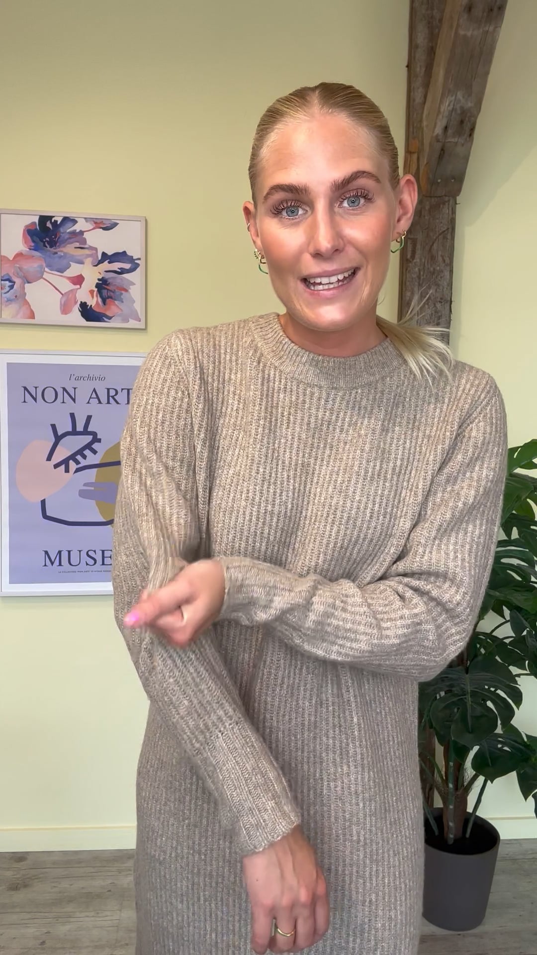 En dejlig blød strik kjole fra mbyM vi bare ikke kan undværre ind i efteråret. Kjolen er i en tæt strik med o-neck og lange ærmer. Super cool til de dage hvor man ikke orker den store styling og der er køligt med et par strømpebukser og en cool støvle til.