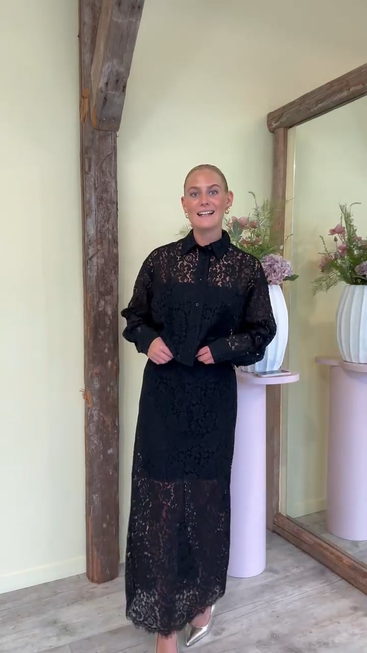 En utroligt smuk nederdel fra MbyM er landet. Denne nederdel er lavet i blonde, men har et underskørt, så den ikke er gennemsigtig over låret. Nederdelen har den flotteste slids bagpå, hvilket gør den super feminin og flatterende.