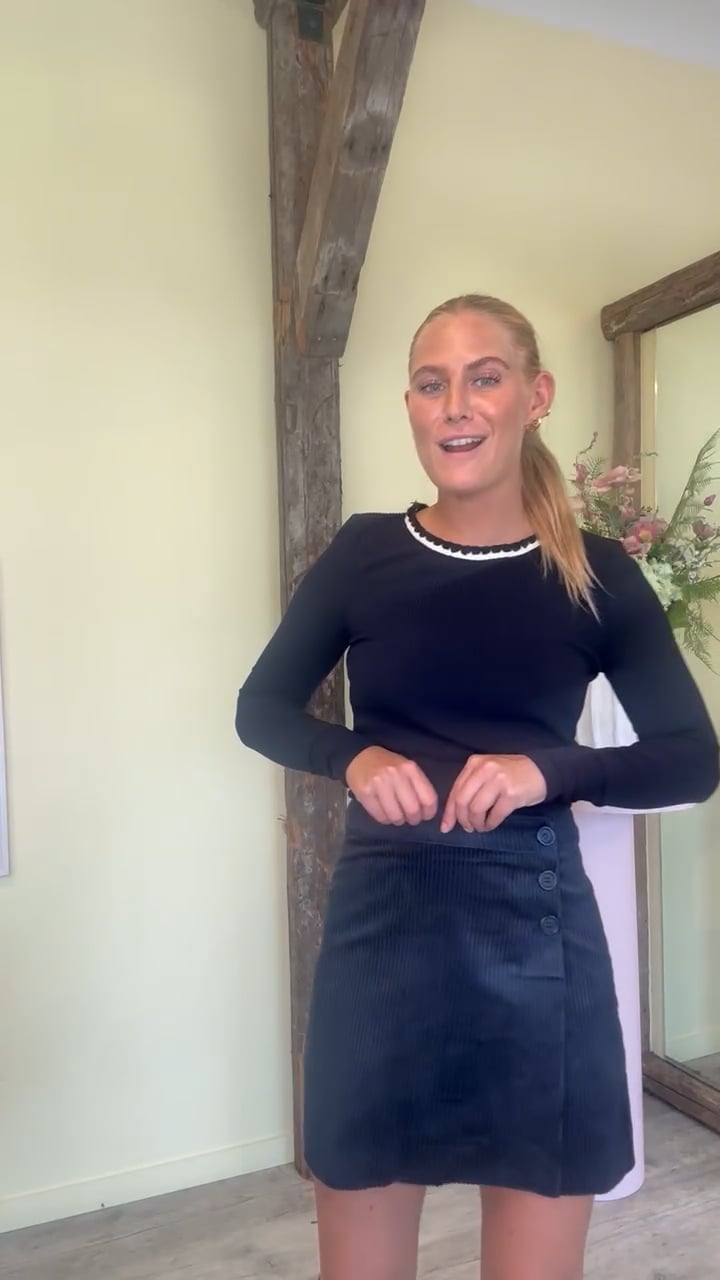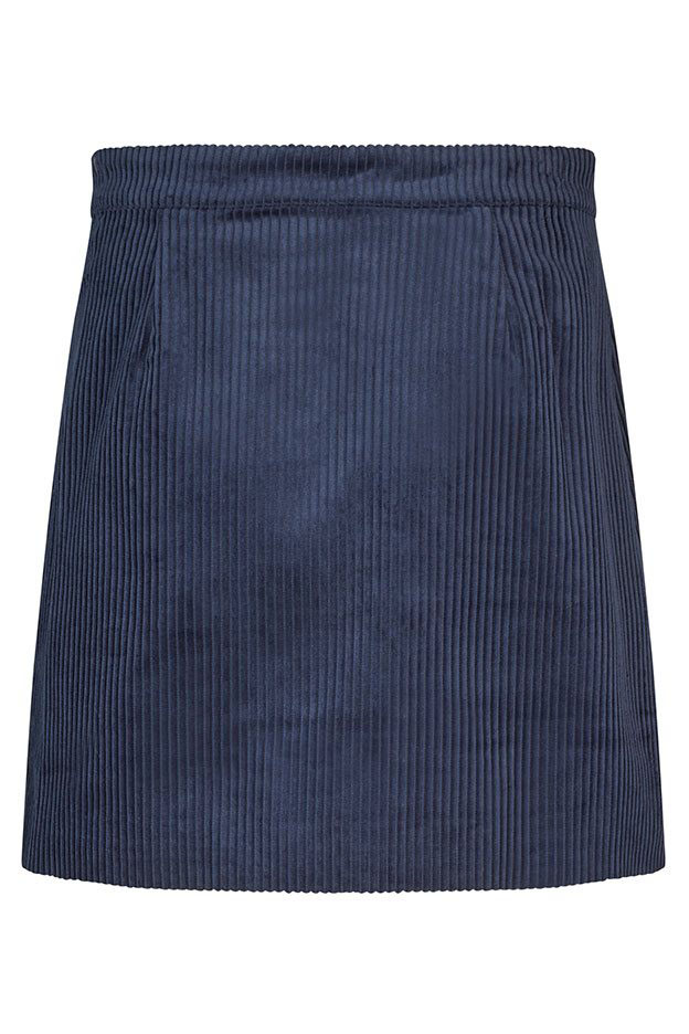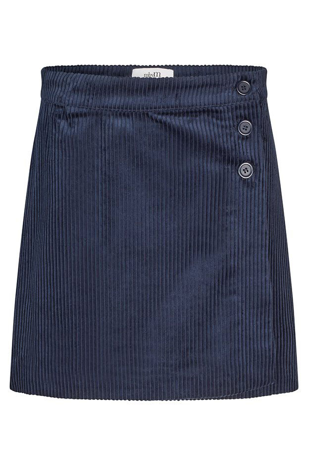 En virkelig fin nederdel fra mbyM i en flot dyb blå farve. Denne nederdel er lavet i en slå-om facon, som lukkes med tre knapper i den ene side. Nederdelen er behagelig i sit bløde fløjlslignende materiale.