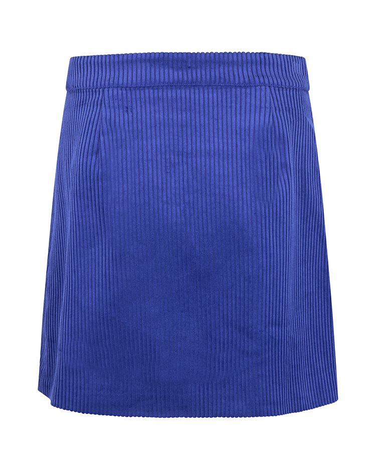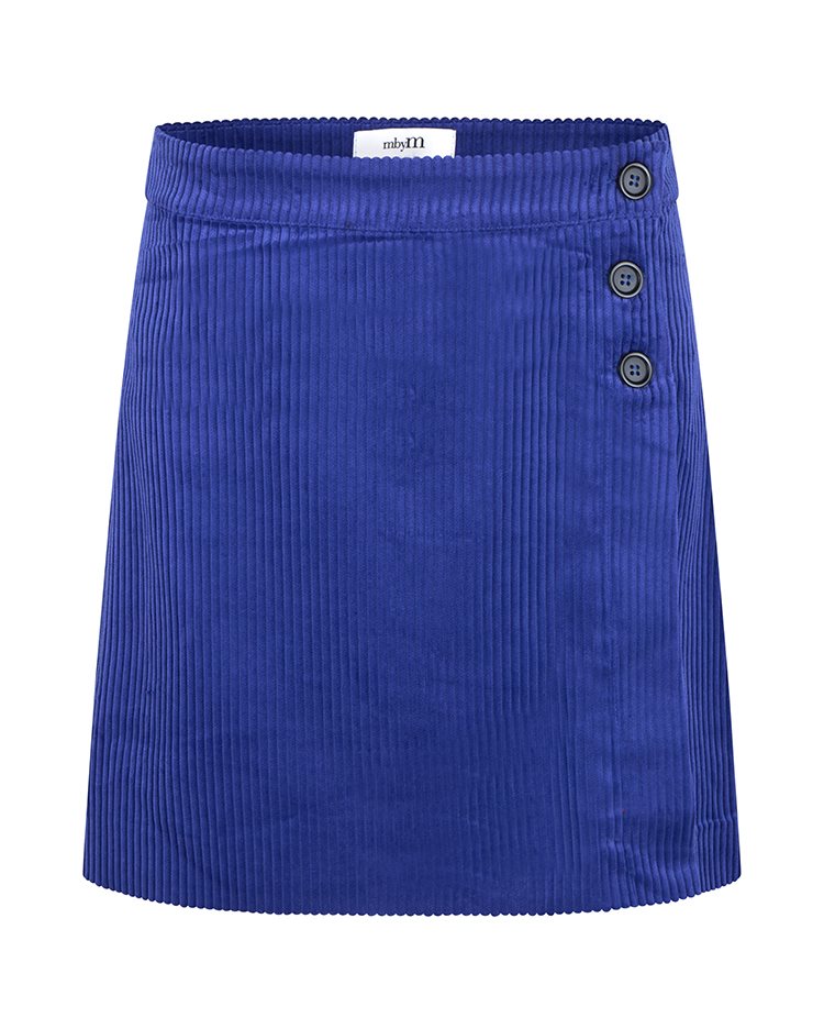 Nederdel fra MbyM i fløjls kvalitet der giver et sejt og retro look. Nederdelen er i den smukkeste blå/lilla farve med tre sorte knapper i siden og fast linning. Den er super cool at bruge med en sort strømpebuks og strik til.