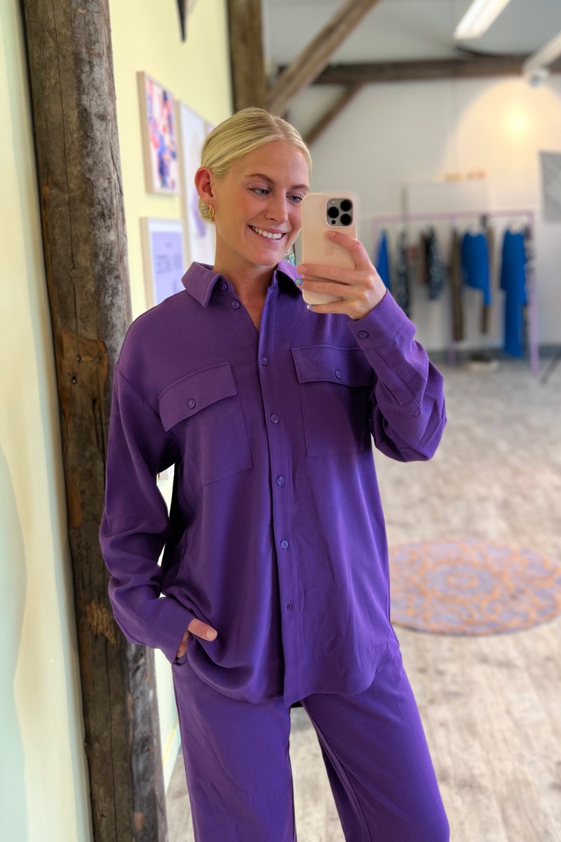 Denne skjorte fra MbyM er et perfekt hverdagssæt med de matchende bukser. Den er lavet i en rummelig pasform med knapper hele vejen ned og lange ærmer i det skønneste behagelige materiale. Skjorten har to brystlommer der giver et afslappet look. Style det som sæt.