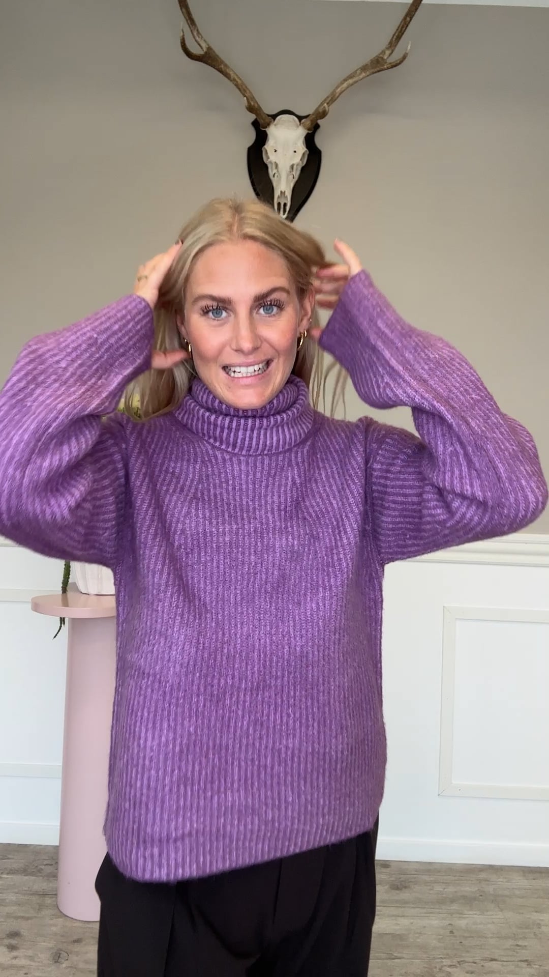 Den lækreste strik fra mbyM! Denne strik har en fin farvekombination i det blødeste materiale. Strikken har et stribet mønster og passer bare til alt i garderoben.