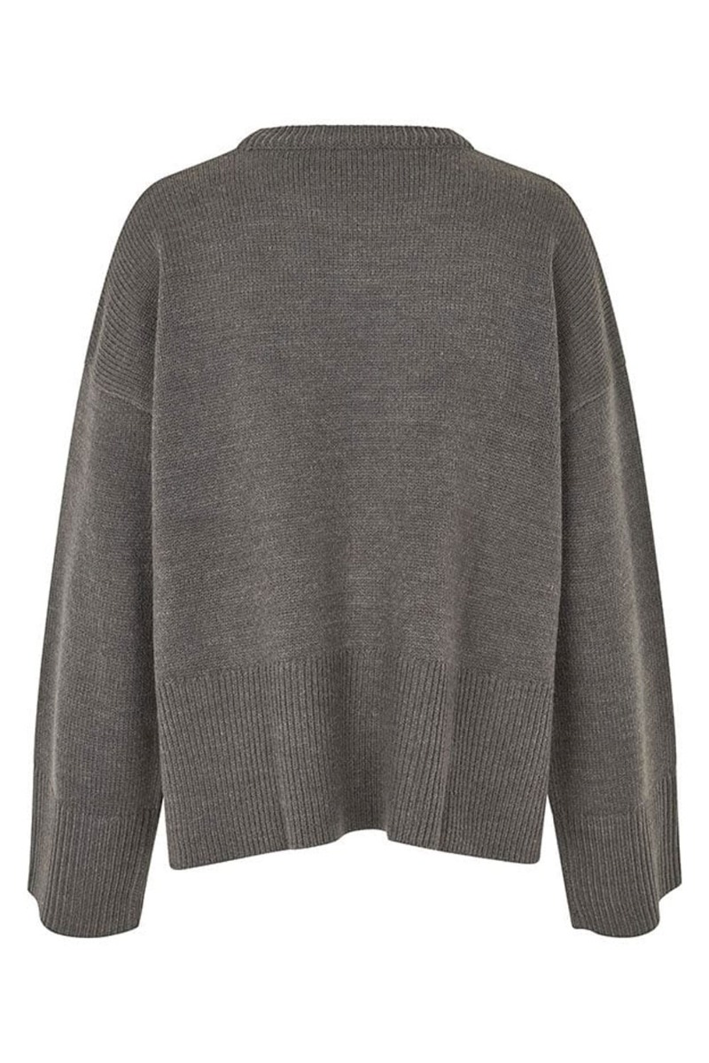 Strik fra MbyM i den sejeste grålige nuance, som vi allerede har set rigtig meget denne sæson! Strikken er i en blød kvalitet som ikke kradser og med en rund halsudskæring. Strikken har en rummelig pasform med brede ærmer og en lille slids forneden, en strik der simpellthen er et MUST til din efteråsgarderobe!