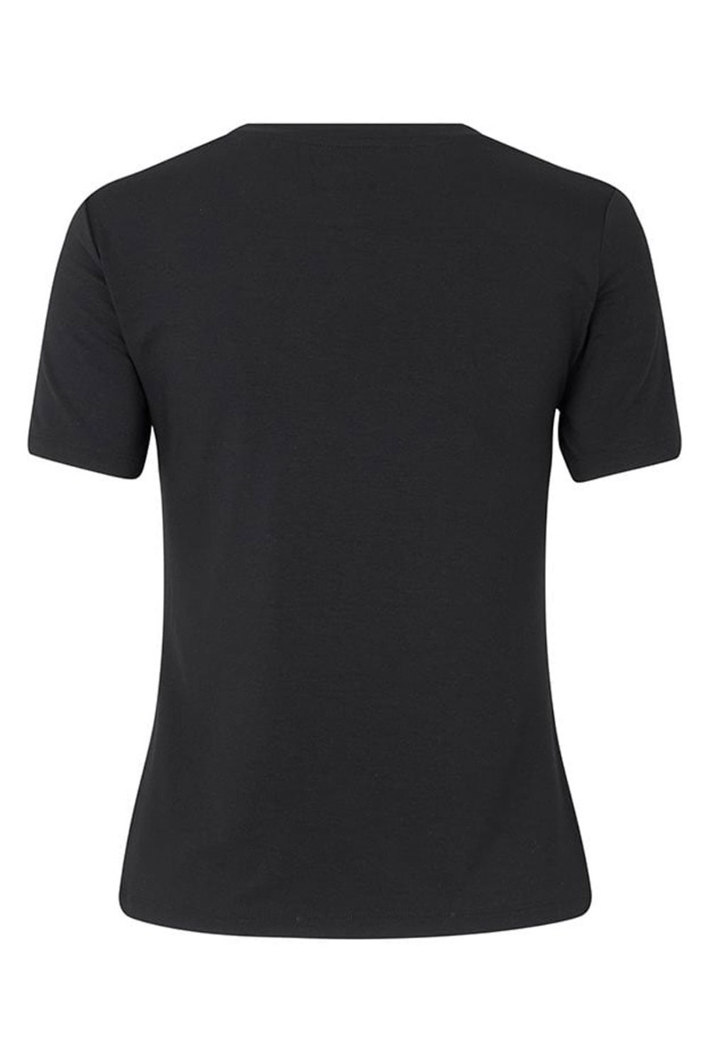 Sort t-shirt fra MbyM i et klassisk fit der er helt tætsiddende i et stretchy materiale der er super blødt at have på. T-shirten har rund hals og korte t-shirtærmer. Style den til nærmest alt og brug den under dine styles året rundt.