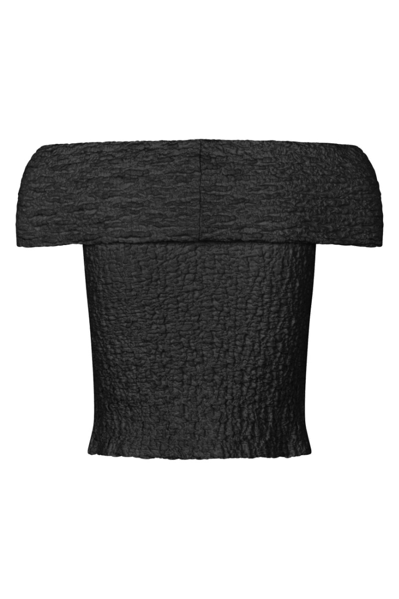 En super sød og smart top fra MbyM er landet. Denne top er i en fin cremefarve og med off-shoulder ærmer, hvlket giver et virkelig charmerende look. Toppen er i et krøllet materiale, som både er behageligt og fyldt med stræk.
