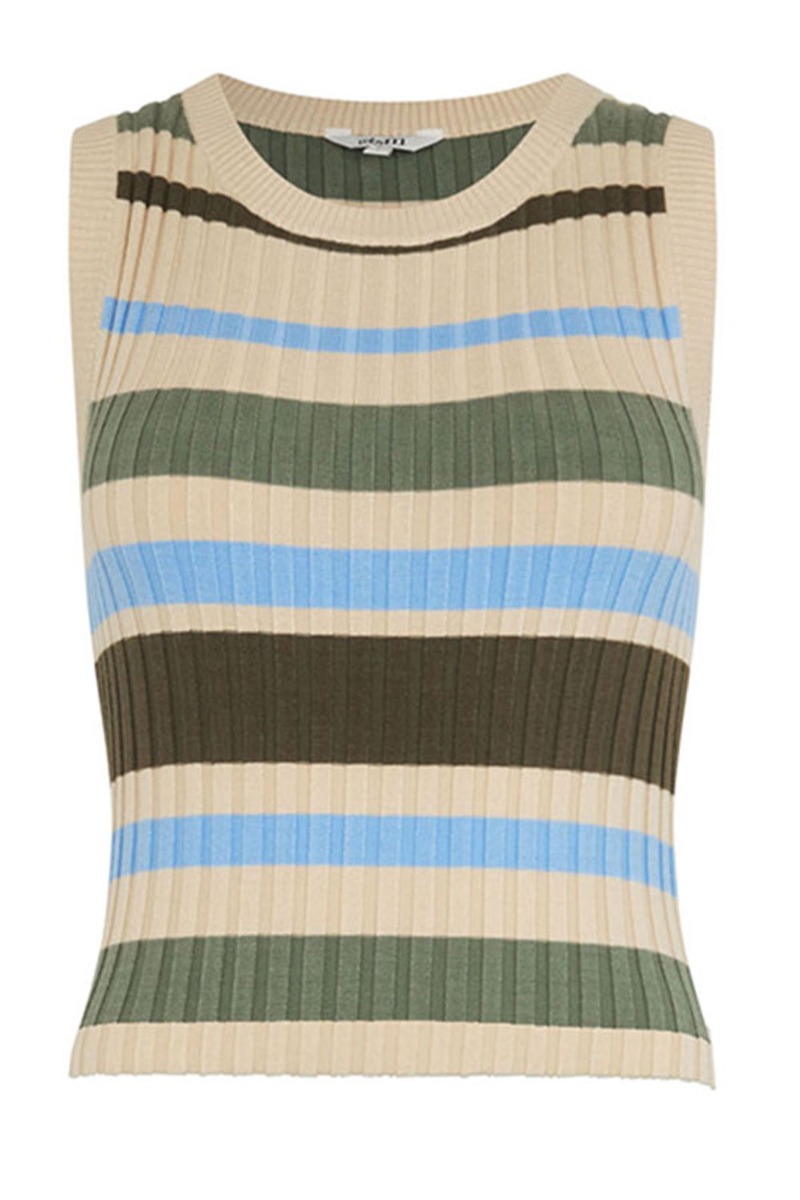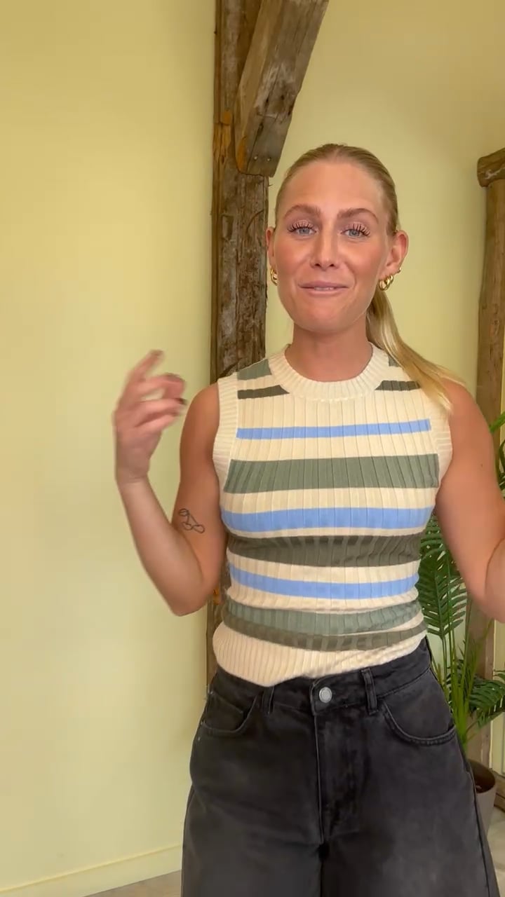 En sej top fra mbyM i den blødeste kvalitet er kommet med striber i forakellige frave. Den er i en rib kvalitet som gør at den er tætsiddende med uden at den strammer. Derudover er den fin til hverdag til et par simple jeans.