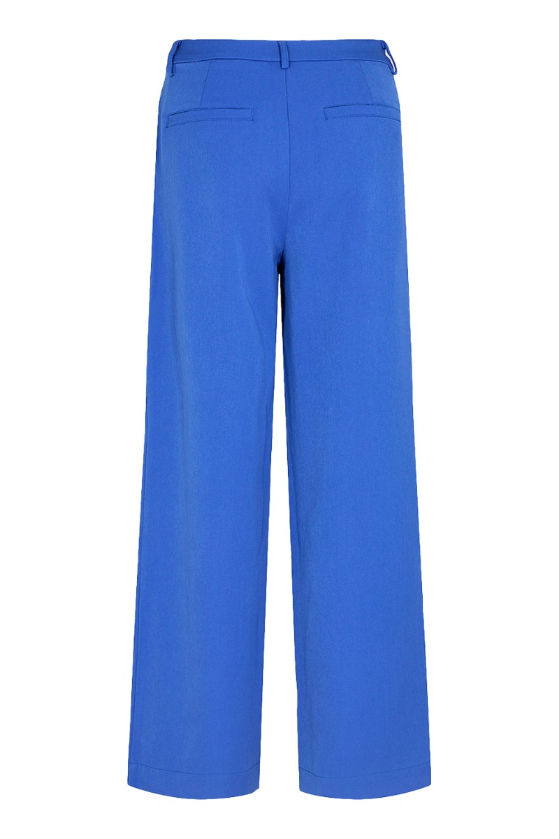 De VELKENDTE Lessa bukser fra Minimum i den smukke blå nuance der passer godt ind i efteråret. Bukserne har et løst look med vidde i benene og fast talje der lukkes med skjult knaplukning. Bukserne har matchende blazer i samme farve.