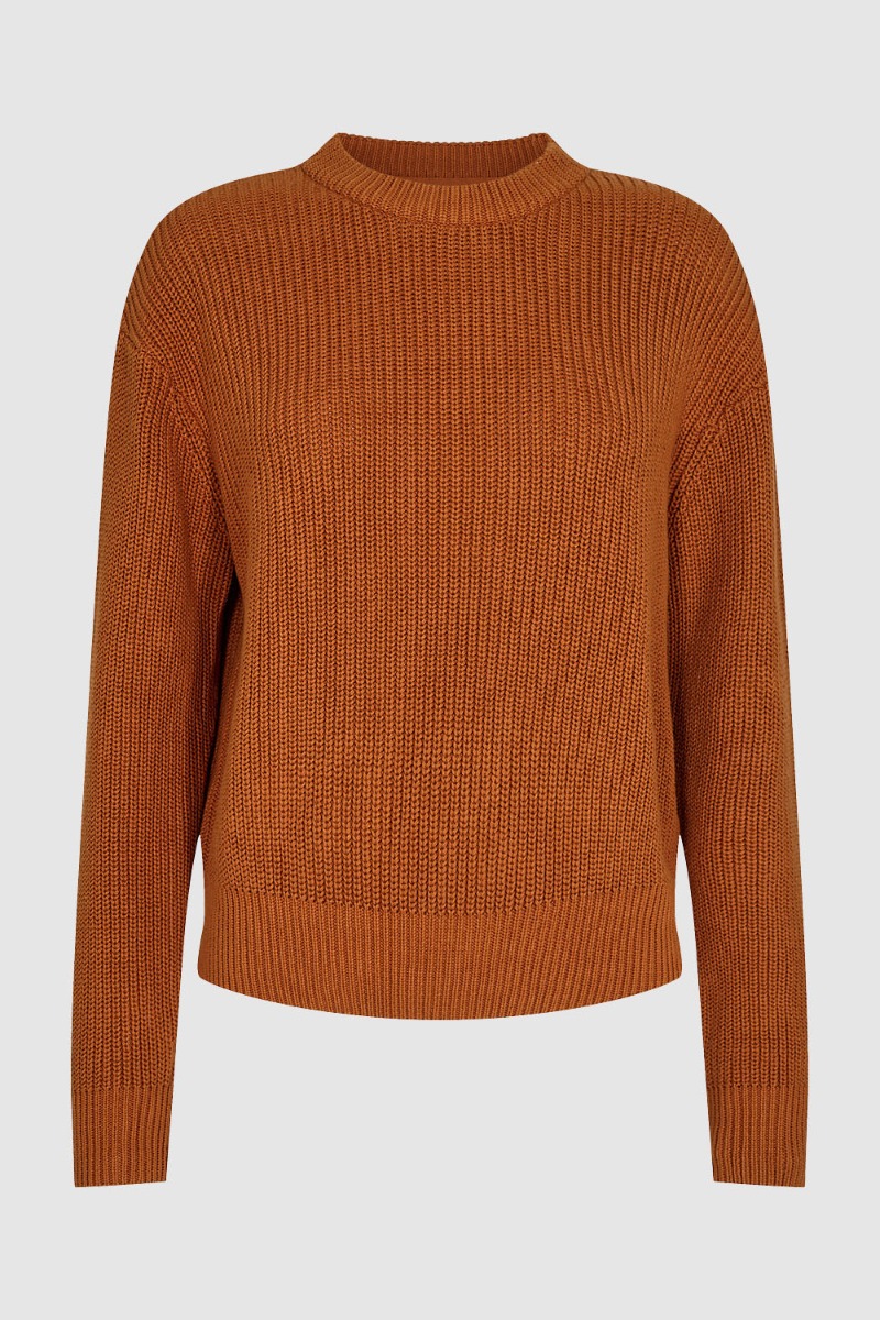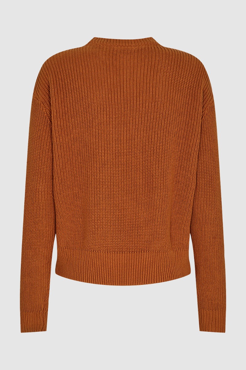 Fin strik fra Minimum i varm kobberbrun farve. Strikken er i 100% økologisk bomuld, som gør den anvendelig året rundt.