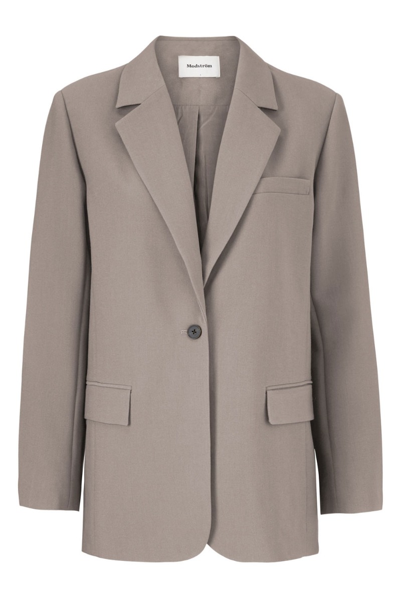 Cool oversize blazer fra Modström. Blazeren har en god længde med skulderpuder og knaplukning fortil. Den har et klassisk look med matchende bukser der giver et fuldendt look.
