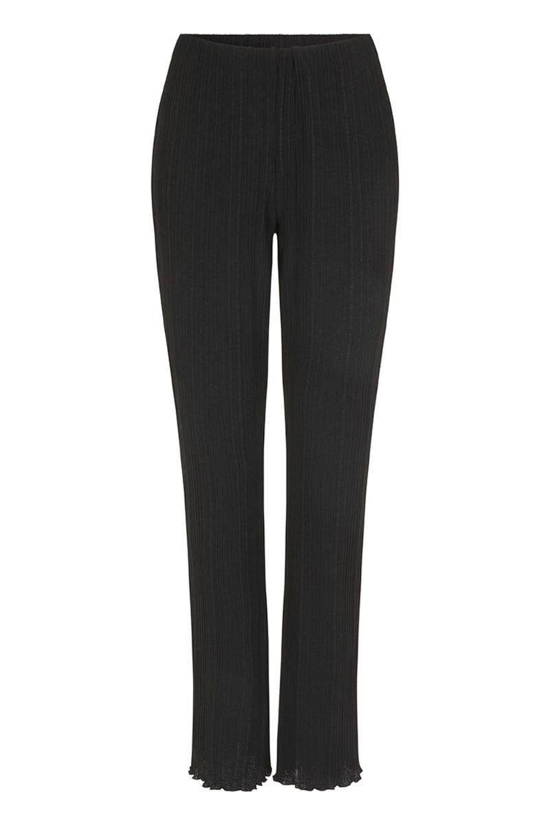 Skønneste bukser med svaj i benene og elastik i taljen der gør dem utrolig behagelige at have på. Bukserne er designet med en lille flæsekant i bunden og er super cool at style til afslapning eller med den matchende kjole for et mere feminint udtryk.