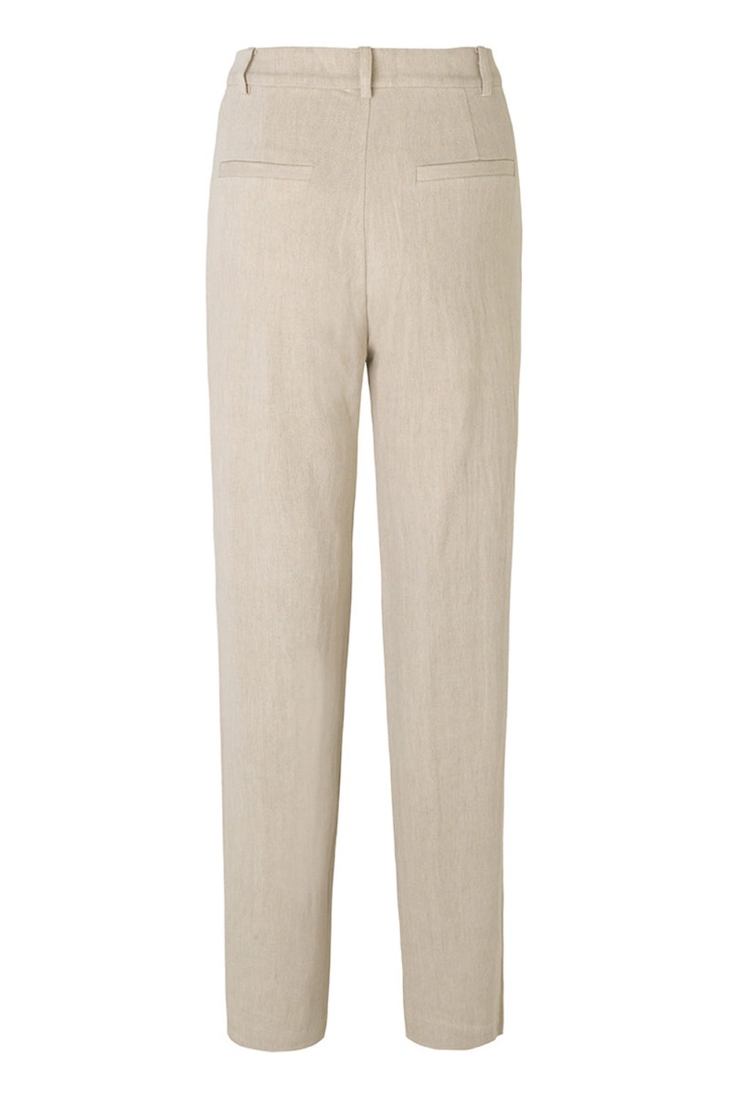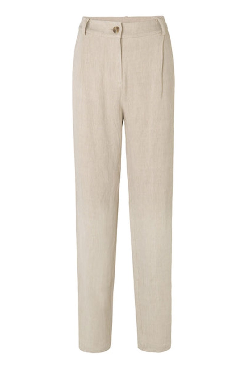 Skønne bukser i en let hørkvalitet. Bukserne er beige i et lige fit der er utrolig behagelige at have på og med fast linning der knappes foran. De er geniale til den sæson vi går imøde og kan styles med matchende blazer eller bruges for sig selv med en fin bluse eller t-shirt.