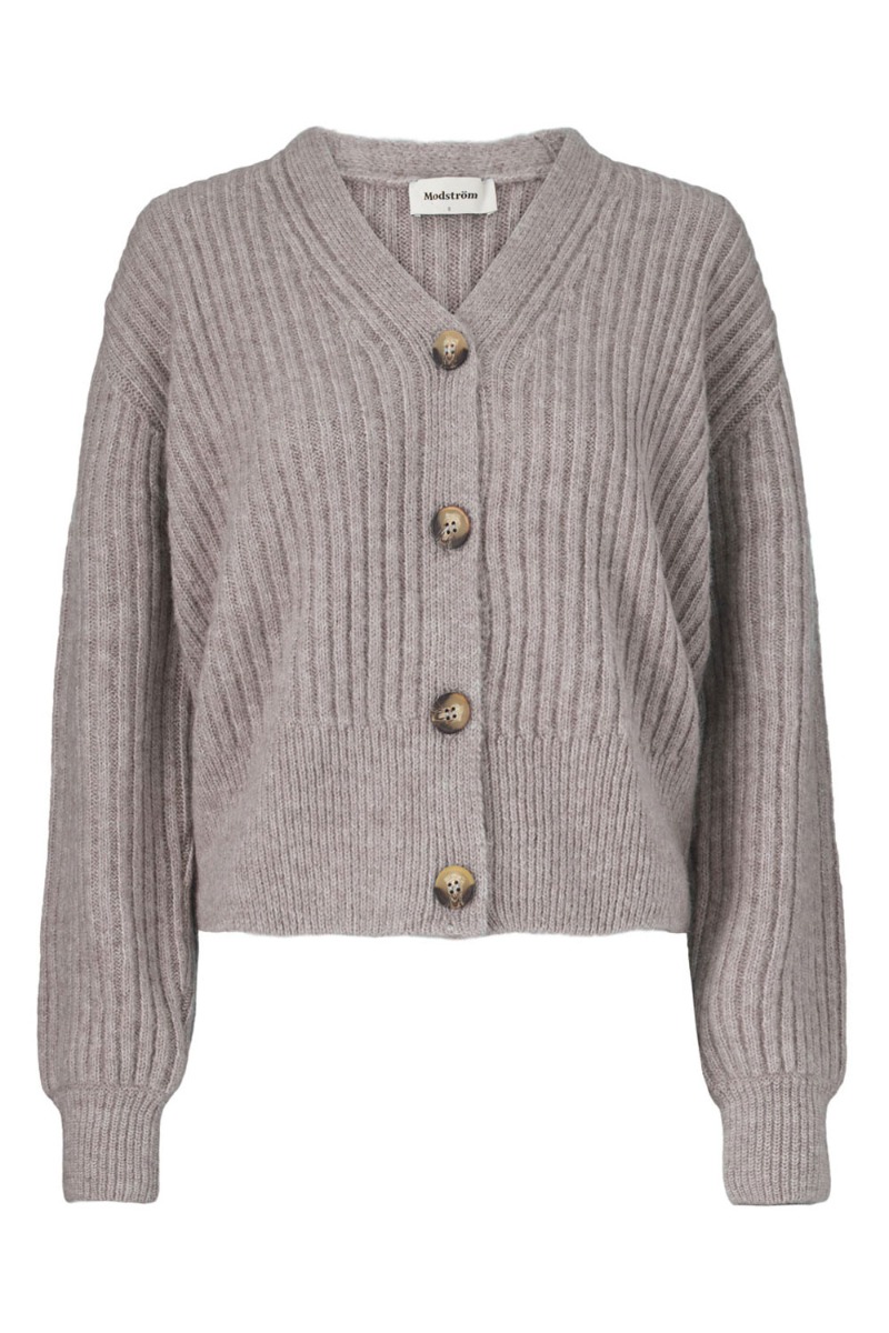 Skøn cardigan fra Modström der er lavet i en blød uldblanding. Den lukkes foran med knapper ved den lille v-hals. Cardiganen er perfekt at style til de kølige dage.
