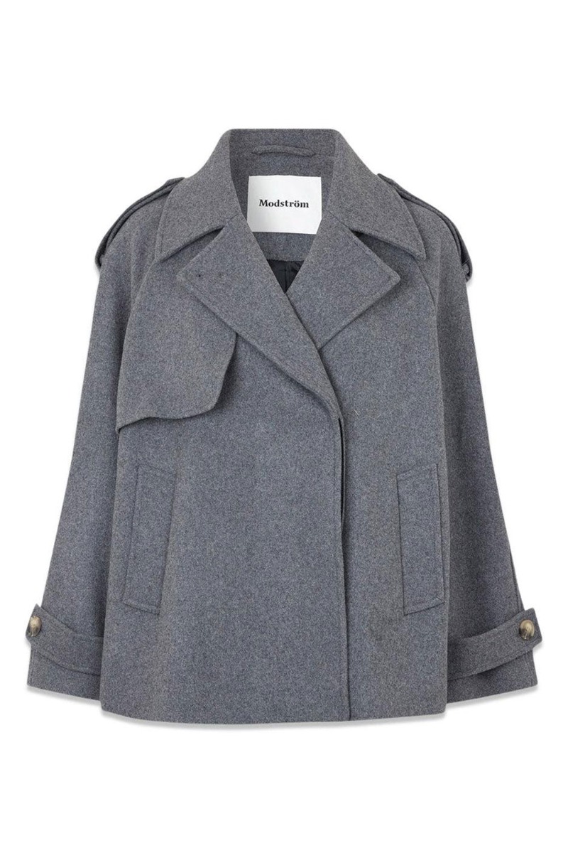 En jakke i virkelig har efterspurgt er denne smukke korte uldfrakke fra Modström, så vi har selvfølgelig lyttet til jer og er helt forelsket i den. Jakken er i en kort model med let brede ærmer, knaplukning foran og bredt bærestykke på ryggen der giver en cool detalje. Den er i 50% uld hvilket gør den helt oplagt til de kolde dage.