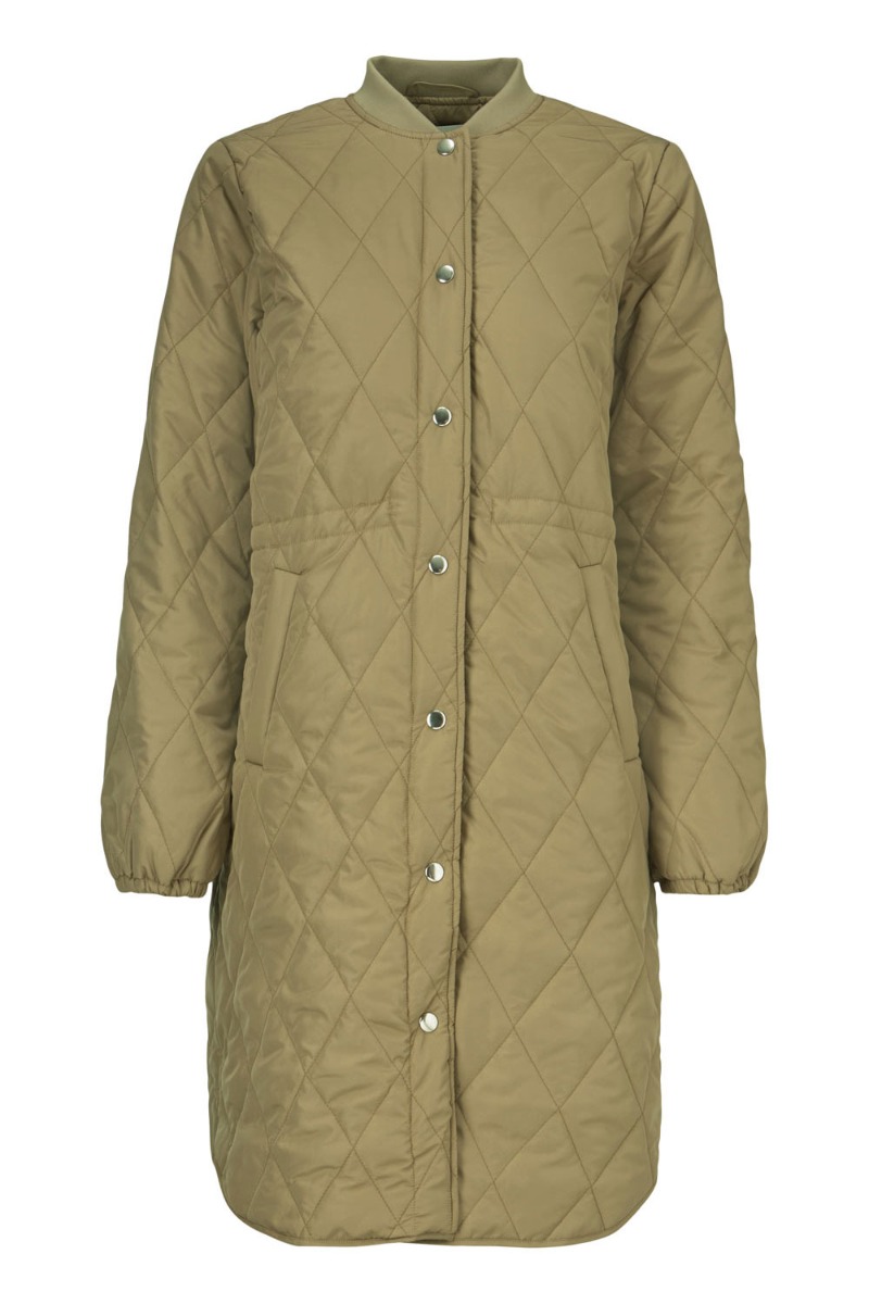 Den perfekte efterårsjakke fra Modström der både kan bruges løs eller med talje. Jakken har justerbar snøre i livet der giver en feminin talje og knappes foran med sølv trykknapper. De lange ballonærmer afsluttes med en lille elastikdetalje og lommer foran.