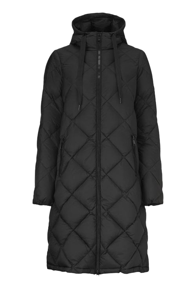 Dunjakke fra Modström i quiltmateriale. Jakken er sort med hætte og justerbare snore. Den har to sidelommer der lukkes med lynlås. Jakkens fyld består af dun som giver en perfekt isolering mod kulden selv på de koldeste dage. Foran lukkes den med en grov lynlås og er super let behagelig at have på.