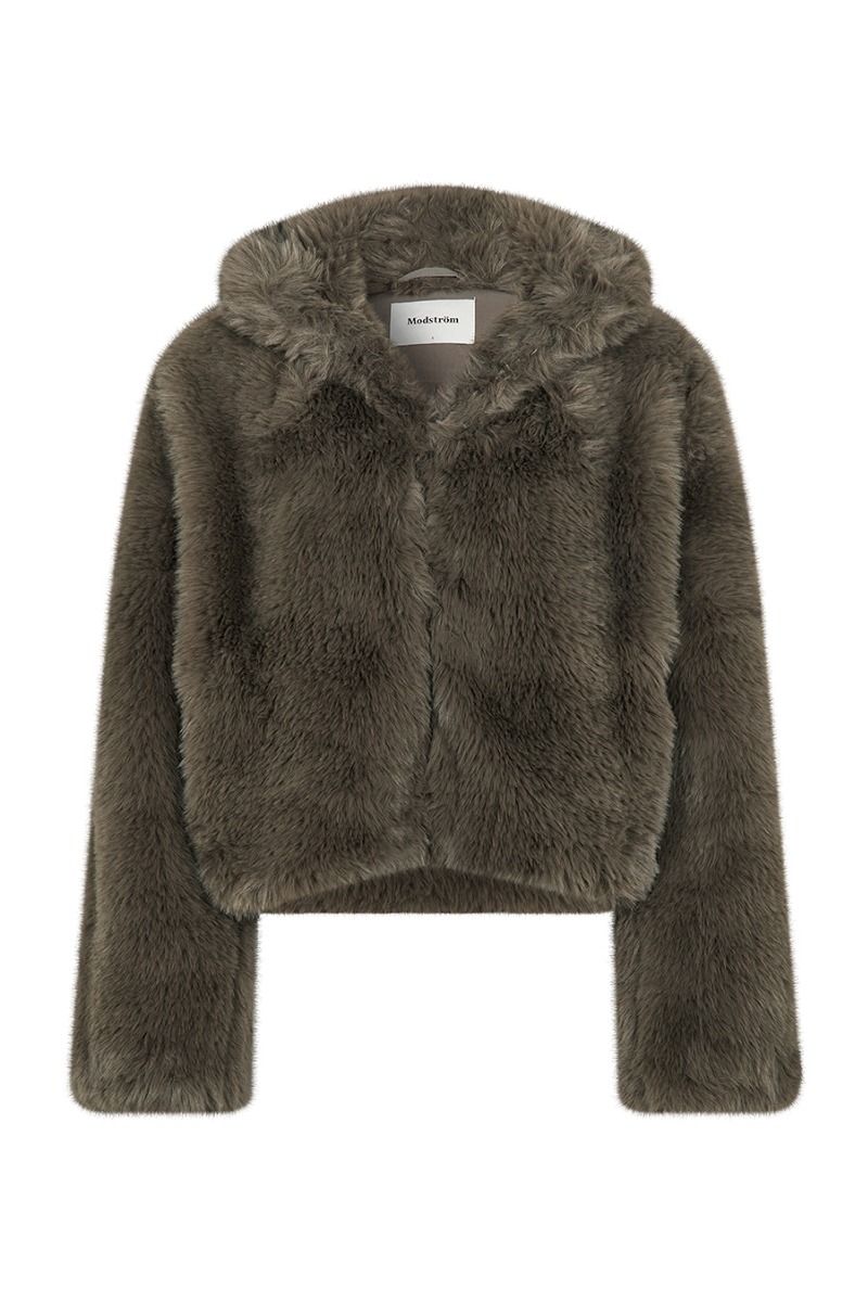 En fin jakke fra Modström er kommet til denne årstid. Den er pelset i looket og derfor giver dette eksklusive udtryk. Den er kort i modellen og lukkes foran med hægter. Der er lommer i siderne og den er fin som overgangsjakke.