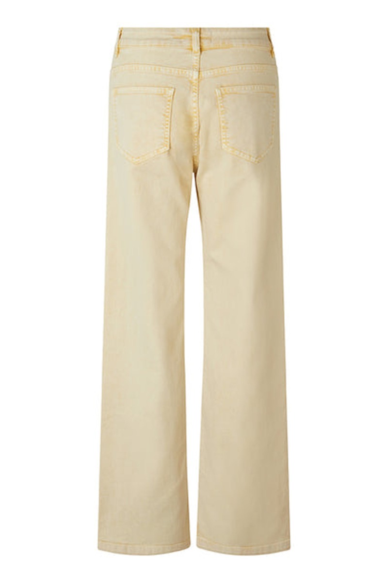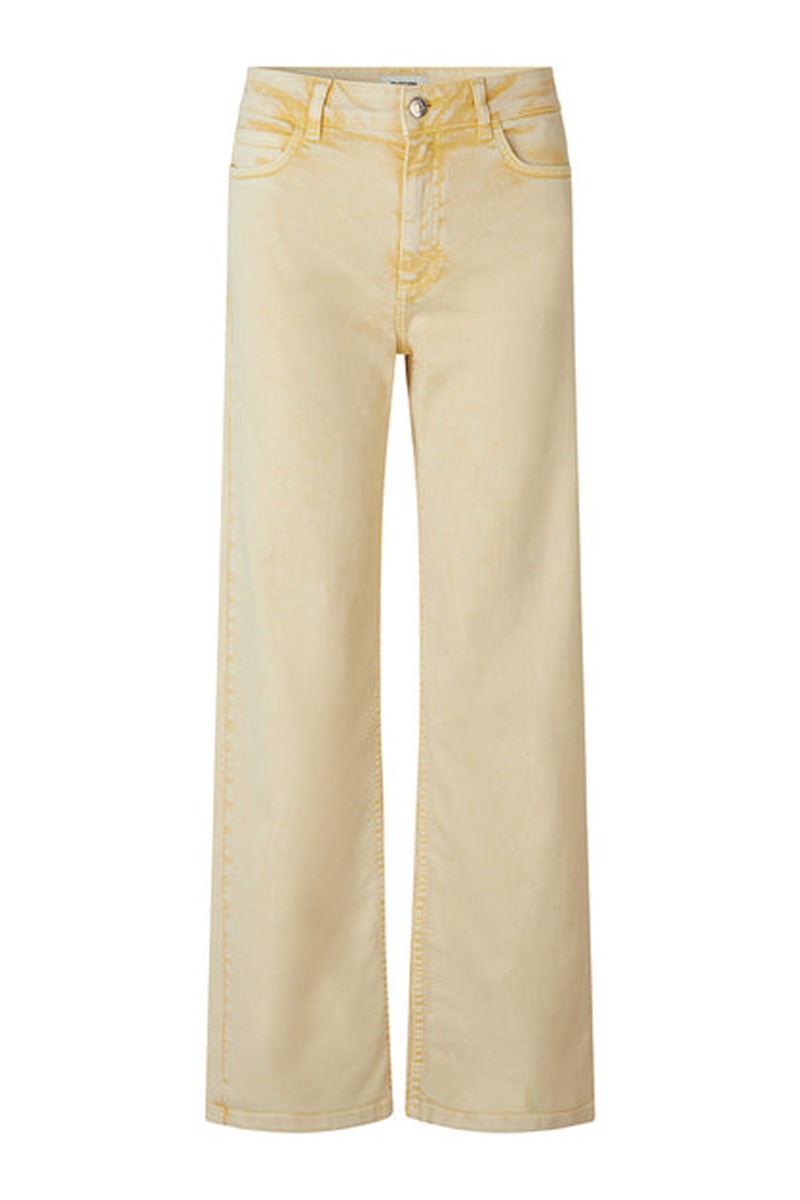 Jeans fra Modström i den fineste lysegule farve, som rigtig passer til den varme vejr helt til sommer. Denim kvaliteten er dejlig blød og modellen er højtaljet med vide i benene. Jeansene er lange, som hvis du har lange ben er disse perfekte til dig. Ellers kan de sagtens foldes op og give et råt look, evt. til den matchende jakke.
