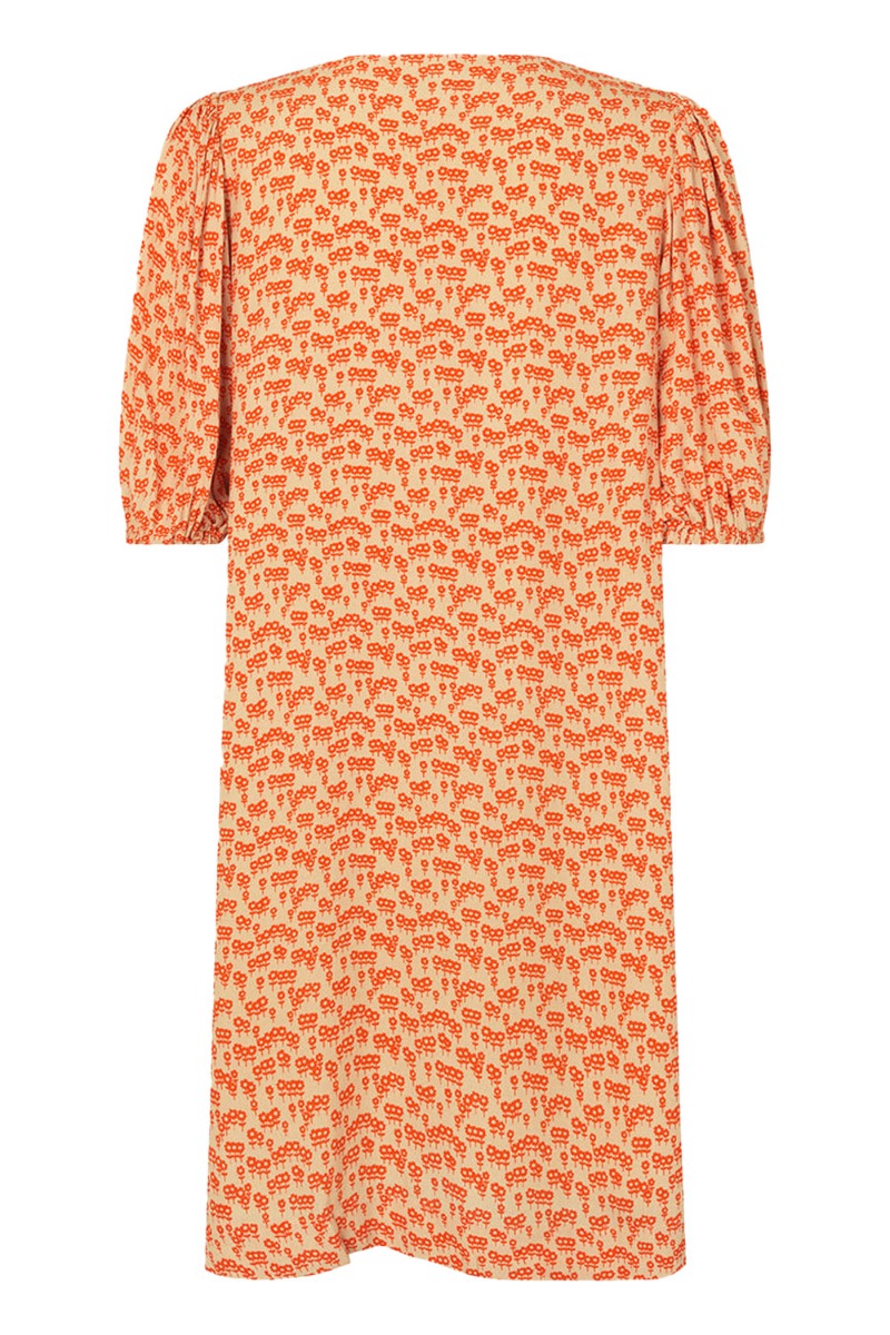 Dette er en rigtig modstöm kjole model! En af Lykkebylykkes favoritter! Kvaliteten er nemlig helt let og derfor rigtig god her til de varme dage, men kan sagtens styles med et par strømpebukser til efteråret. Snittet er A formet og der er V hals samt pufærmer. Printet findes også i en skjorte.