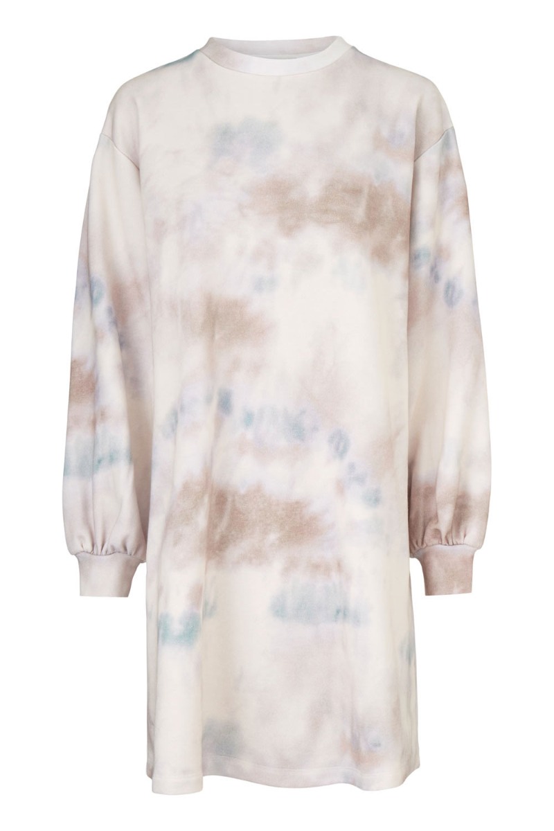 Cool sweatkjole fra Modström i tie dye print. Kjolen har en afslappet pasform med rund hals og lange store ballonærmer. Den kan styles med et par rå støvler eller de matchende sweatpants under for et rigtig stilet hyggesæt.