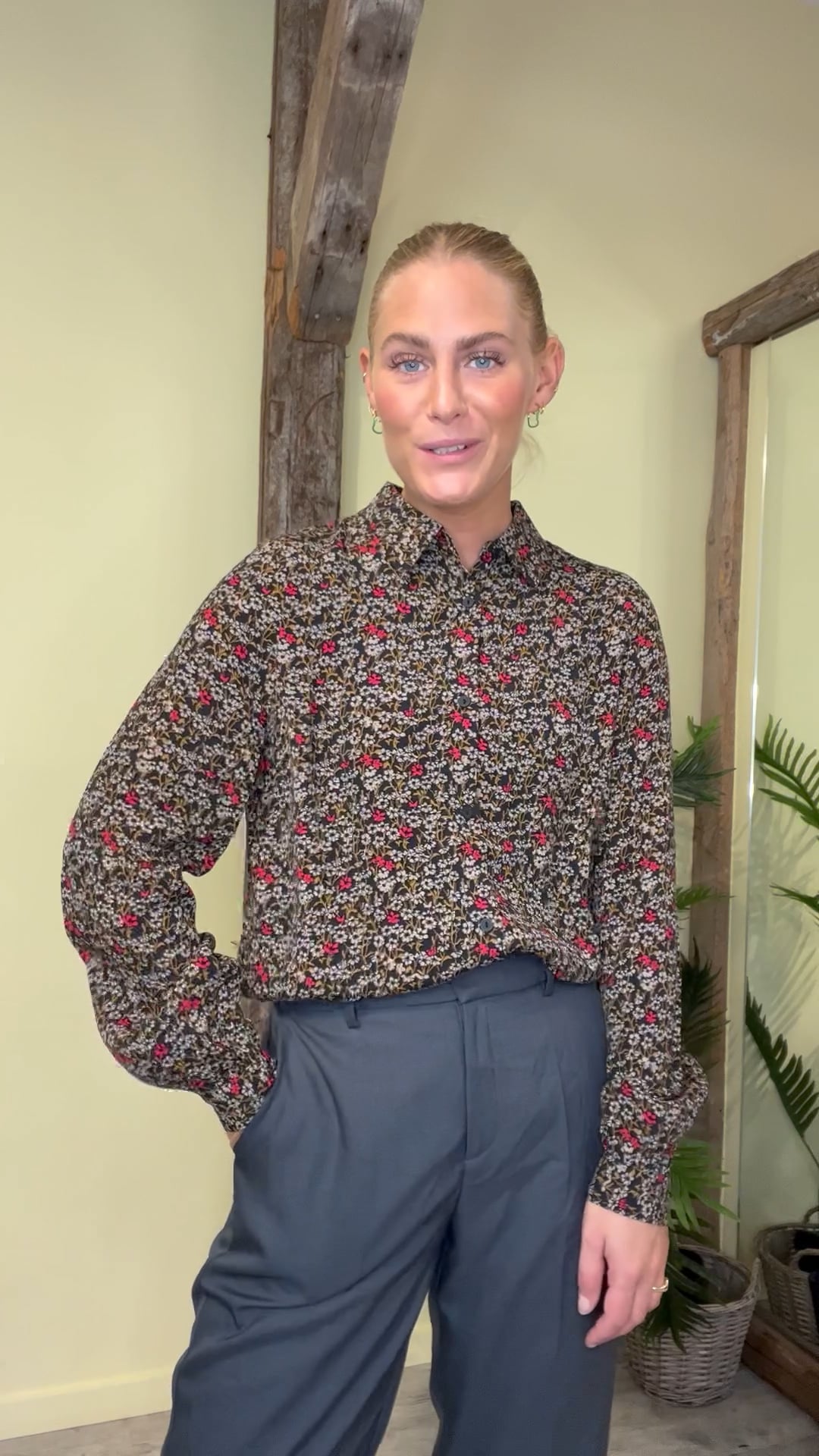 En fin skjorte er kommet fra Modström i et rigtig efterårsprint. Den er i brune nuancer med små røde blomser. Skjorte er klassisk med knaplukning foran og skjorte krave. Derudover er den dejlig let i materialet så den nemt kan sættes sammen med et par jeans eller med til et par bukser.