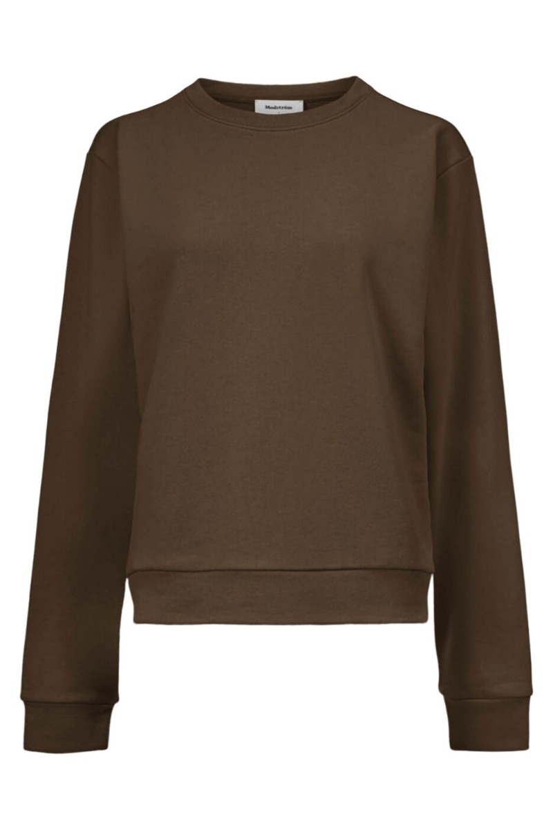Sweatshirt fra Modström i brun med matchende sweatpants i samme farve. Sweaten er en smule oversize med rund halsudskæring og afsluttes med ribkant ved hals, bund og håndled.