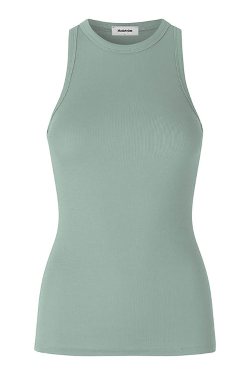 Klassisk igor top fra Modström i en støvet blå i den velkendte ribkvalitet. Toppen har bryderryg og i en tætsiddende pasform med stretch. Den er god at have i basis garderoben og findes i flere fine farver.