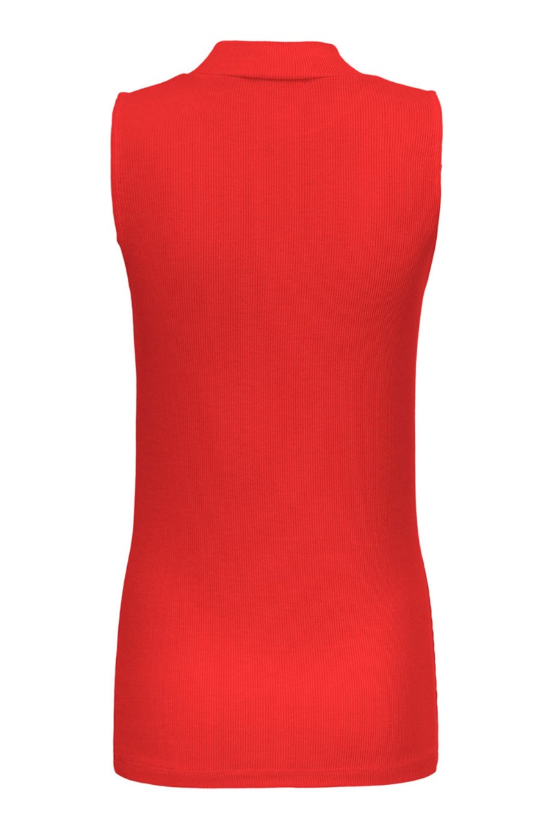 Kortærmet top fra Modström i rød. Toppen er lavet i den blødeste ribbet kvalitet med masser af stræk i en tætsiddende model. Den er super cool at style under en blazer eller nedringet kjole for at skabe en ekstra detalje.