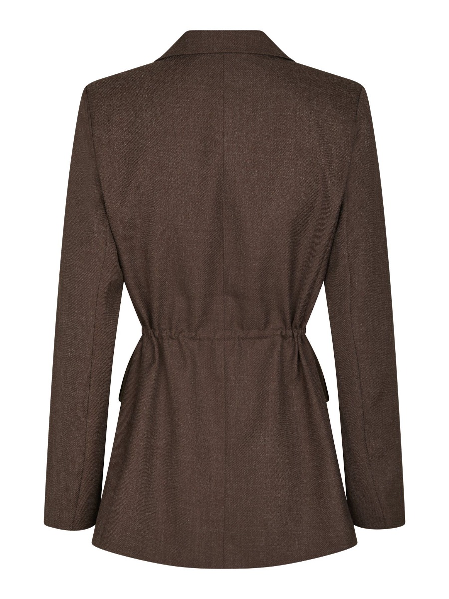 Blazer fra Neo Noir. Denne blazer har en flot mørkebrun farvenuance. Blazeren har et bånd i taljen som kan bindes både fortil og bagpå hvis man er mere til det! Det er super populært med bindebånd for at fremhæve en feminin silhuet.