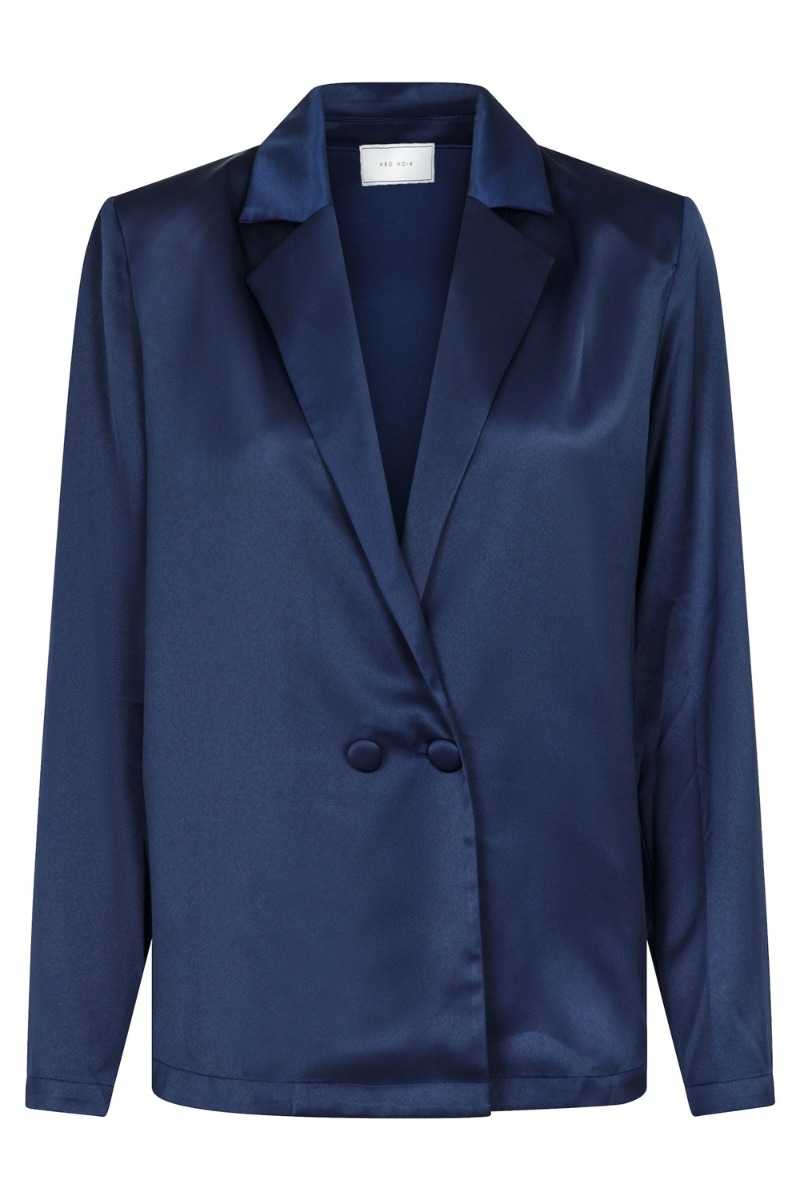 En virkelig smuk let blazer fra Neo Noir i mørkeblå. Blazeren har en lille skulderpude der er riet fast og kan derfor nemt ries op hvis ikke du ønsker dette look. Den lukkes foran med dobbeltrade og dyb udskæring. En blazer der er anvendelig over dine feststyles.
