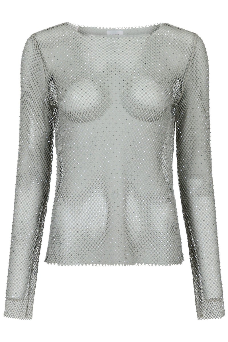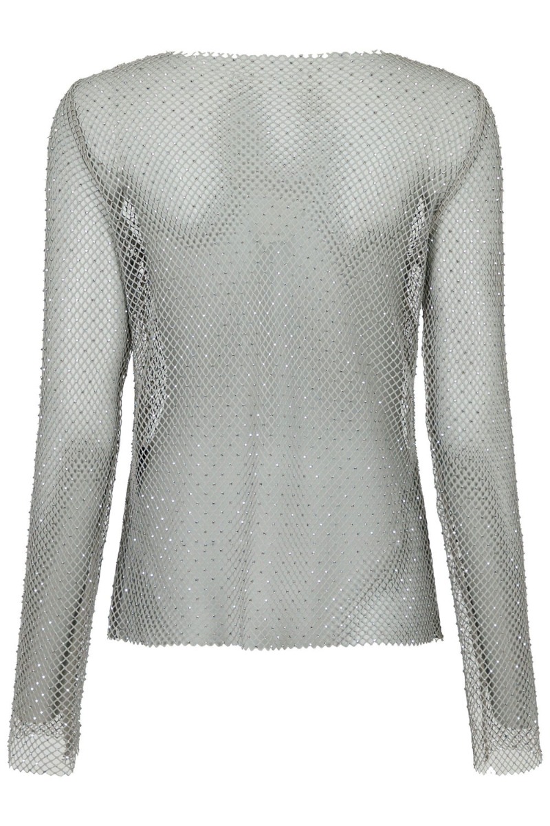 En sej bluse er kommet fra Neo Noir i denne net kvalitet med sten limet fast ved samlingerne. Den er helt gennemsigtig, derfor anbefaler vi at du bruger en top under. Den har lange er og båd halsudskæring. Derudover er den fin til en simpel nederdel til et festligt arrangement. Eller brug den med en blazer til hverdag.