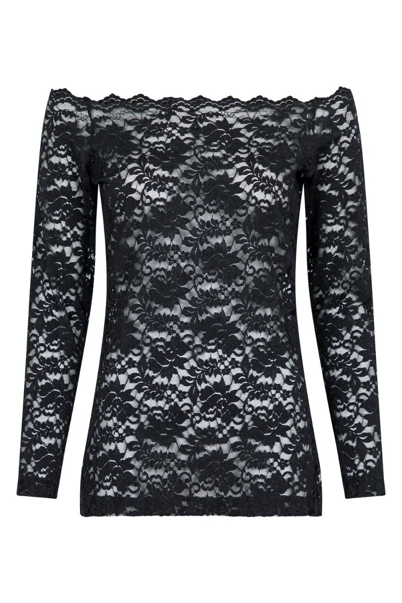 En sød blonde bluse fra Neo Noir er kommet i en dejlig lækker kvalitet. Den er gennemsigtig og derfor anbefaler vi at du bruger en top under. Den har bådudskæring hvor der er klippet fint i kanterne så den passer til blondens mønster. Den er fin til et par jeans eller en nederdel.