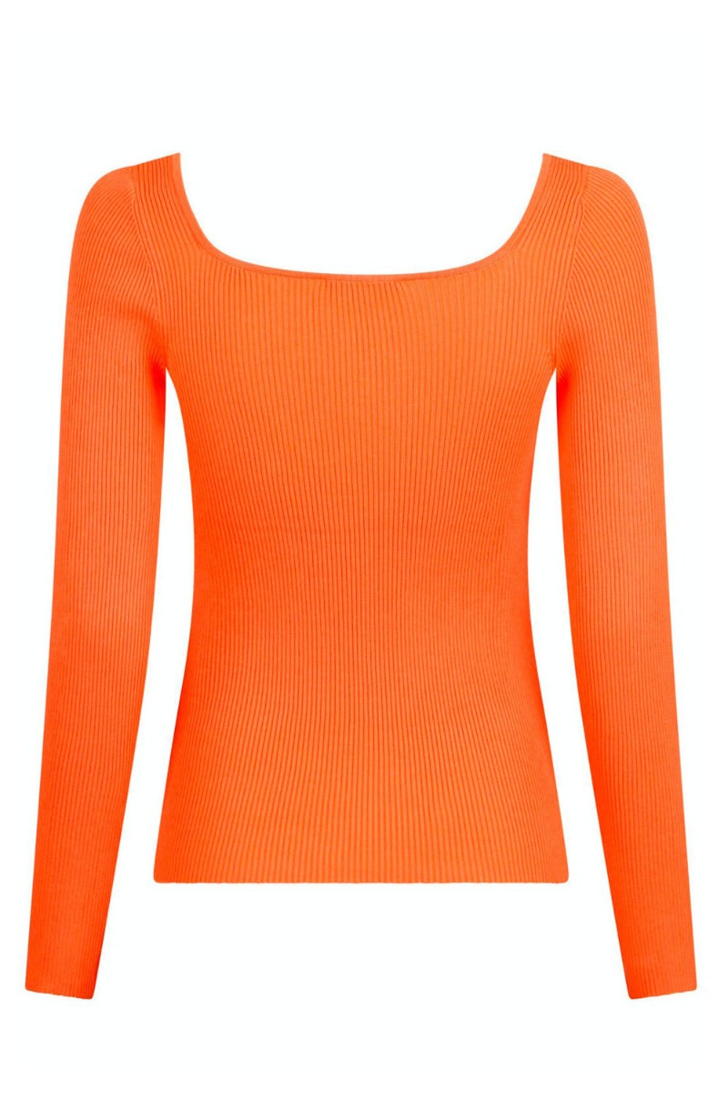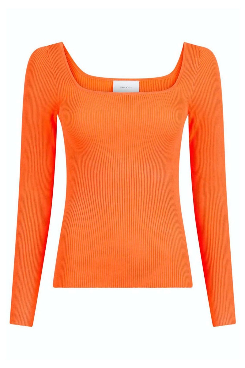 En simpel bluse fra Neo Noir i den sejeste orange nuance. Den er tætsiddende med masser af stretch, en smuk firkantet udskæring og lange ærmer. Blusen er lavet i en behageligt ribbet materiale der gør den skøn at have på. Den er perfekt til hverdagsbrug.