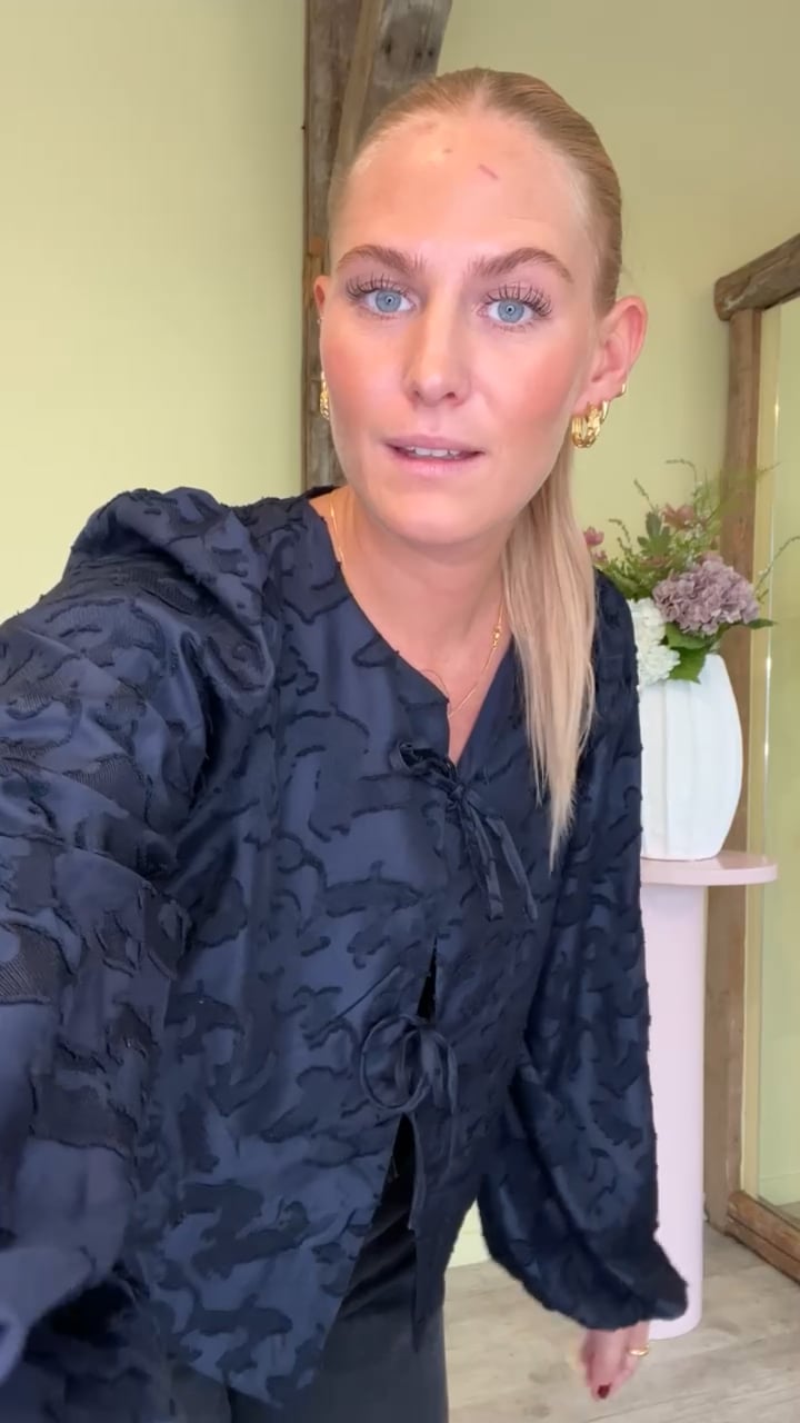 En smuk bluse med struktur i kvalitet som giver liv til stylen. Den er fra Neo Noir og lukkes foran med et lille bindebånd. Derfor er den også ammevenlig og har små ballonærmer. Den er løs i pasformen og kan nemt bruges til hverdag med bukser eller til fest med en paillet nederdel.