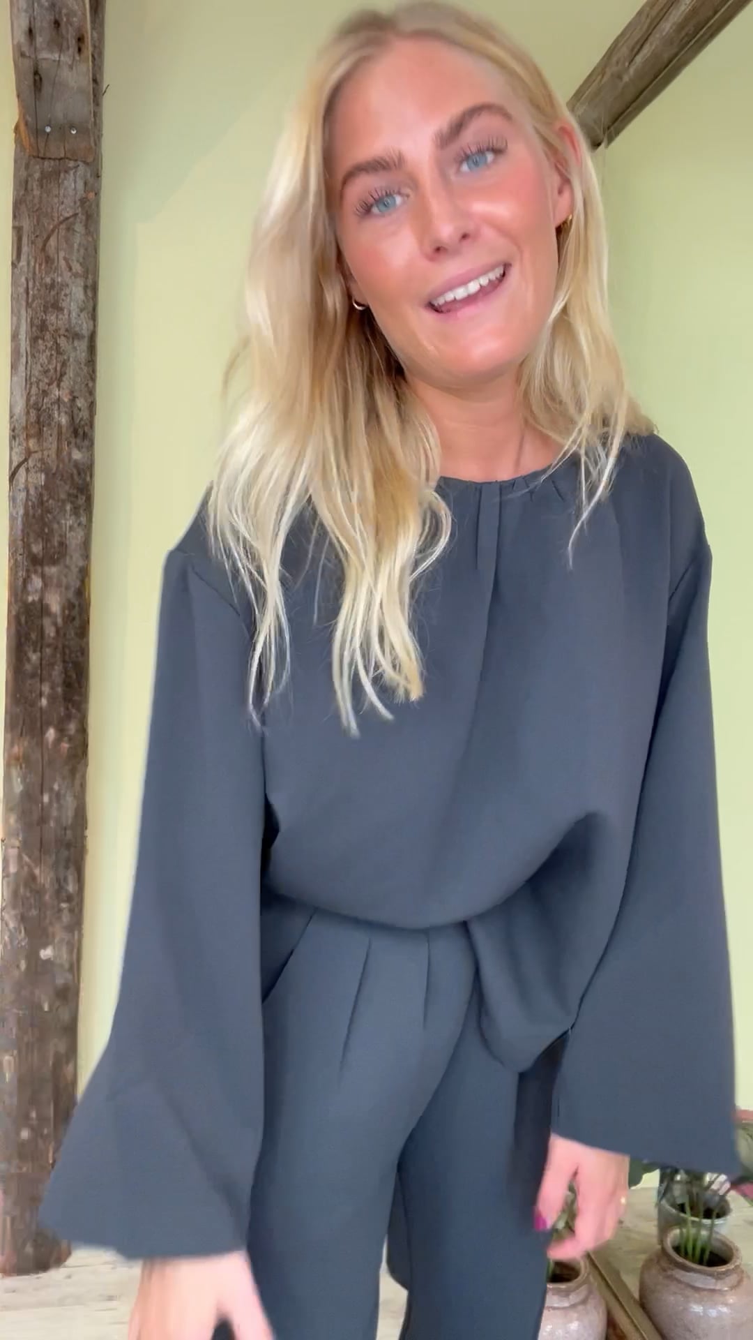 En enkel feminin bluse fra Neo Noir i en flot grå nuance med små diskrete detaljer. Blusen er med rund hals der har en lille rynkedetalje foran og lukkes i nakken med knaplukning. Bagpå er der en fin detalje med et ekstra lag der skaber et unikt look.