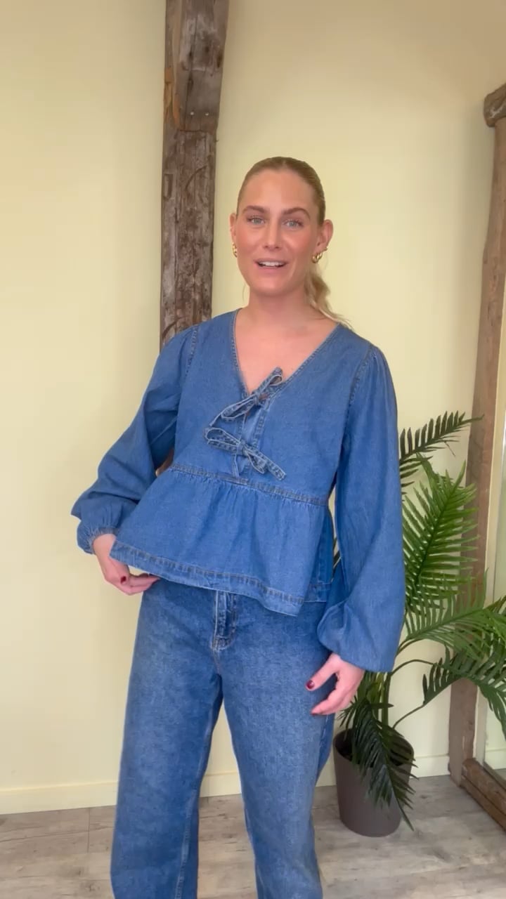 Den smukke bluse er perfekt til denne sæson fra Neo Noir. Den er i en lækker denim kvalitet og kan nemt styles til et par jeans. Der er fine sløjfe detaljer foran og den har en peplumeffekt i bunden. Ærmerne er lange med elastik i bunden så den danner en lille balloneffekt.
