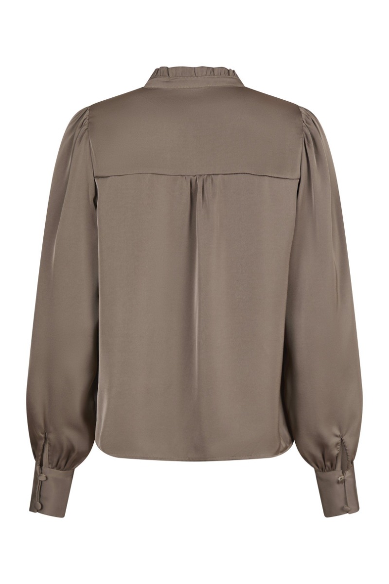 Neo Noir - Bluse - Massima Drapy Satin Blouse - Dark Taupe