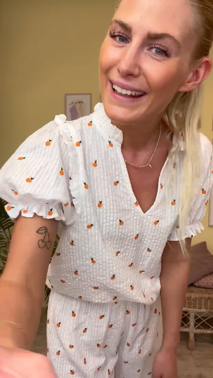- Matchende bukser i appelsinprint