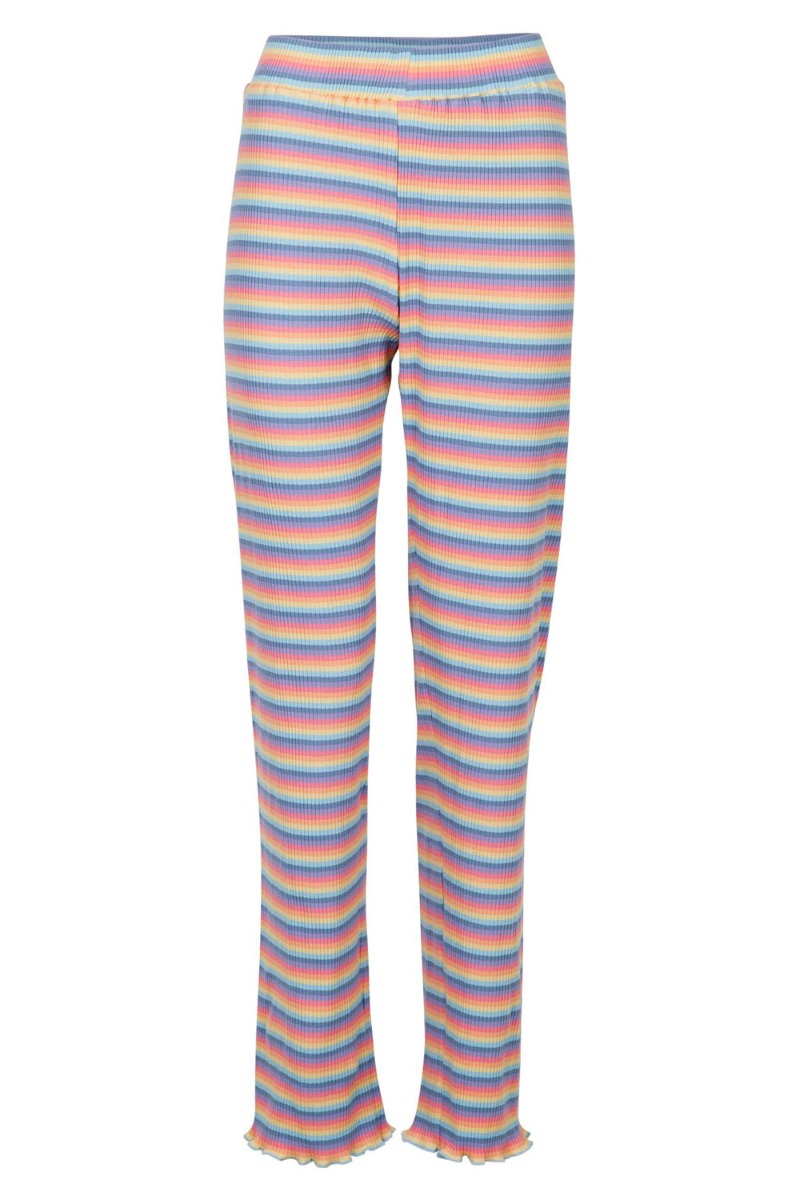 De skønneste bukser fra Neo Noir med masser af stræk i regnbuens farver. Bukserne er tætsiddende med elastik i livet og vidde i bunden. De afsluttes med en sød bølge kant og er perfekt at bruge under en feminin kjole eller oversize skjorte.