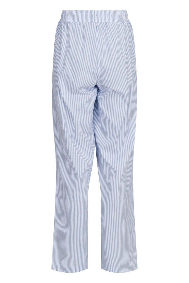 Stribet bukser fra Neo Noir i hvid og blå. Bukserne er et MUST til denne sæson vi går imøde med godt vejr og afslappet dage. De har elastik i taljen med snøre foran. De har et lige snit i et løst udtryk og er super seje med en tee eller skjorte.