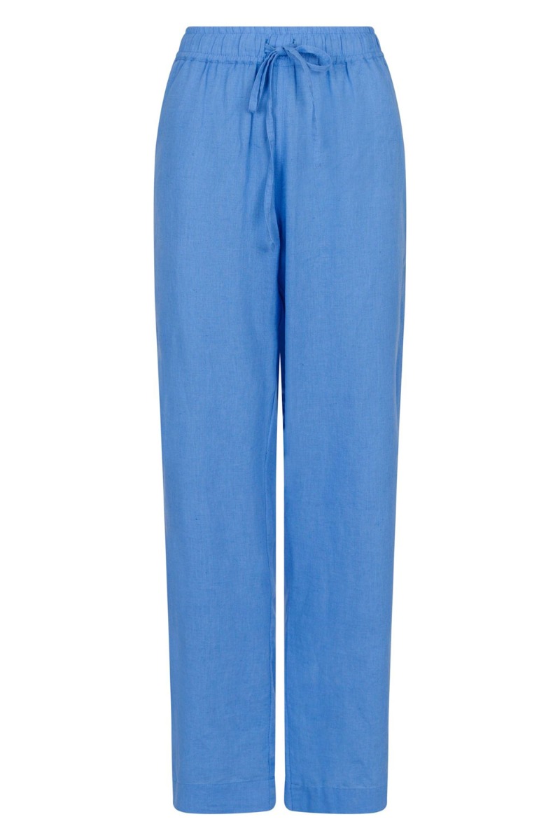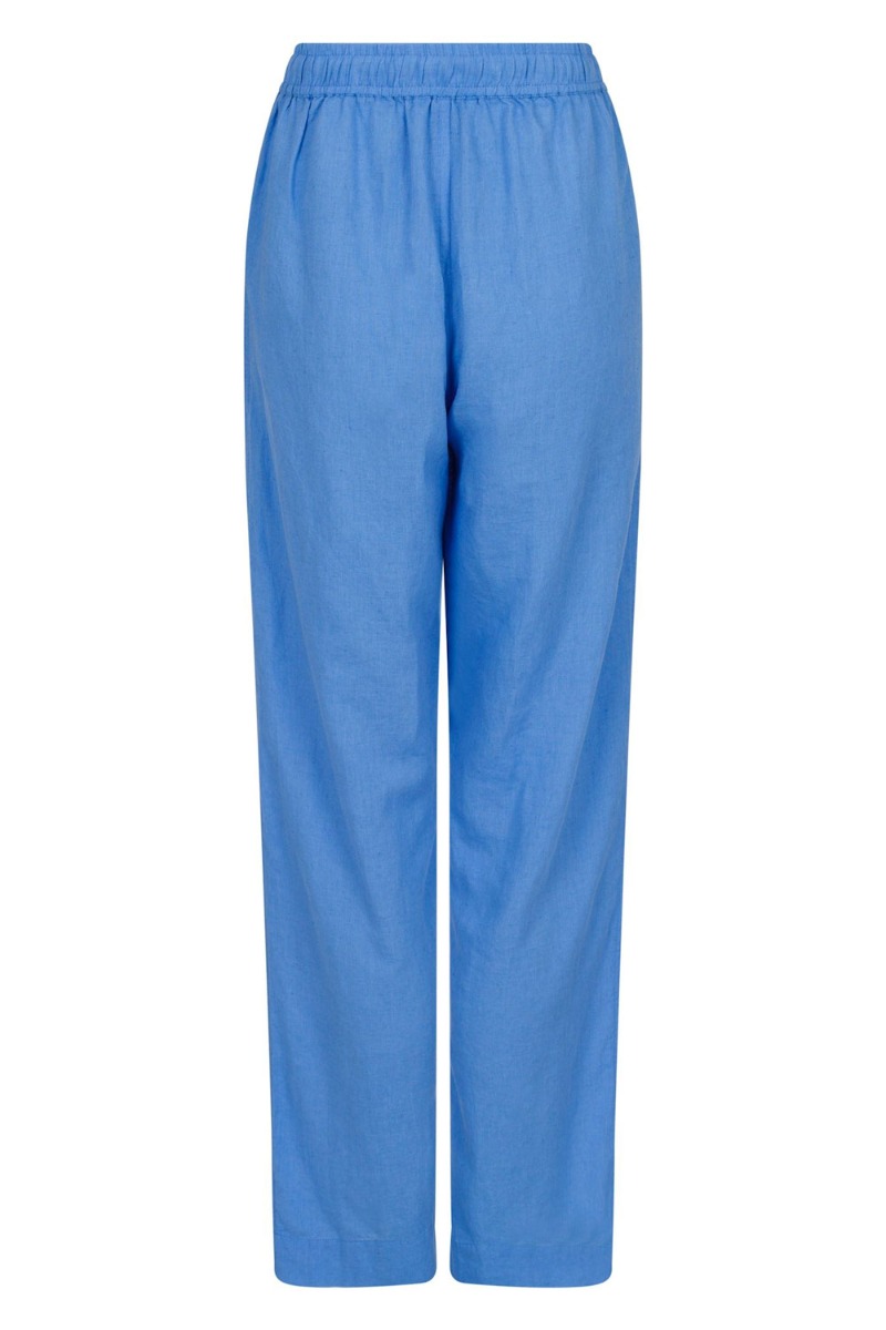Skønneste hørbukser fra Neo Noir i en flot blå farve der er perfekt her til sommeren. Buskerne har et lige snit der sidder løst med en bred elastikkant i taljen og snøre foran der kan justeres. Style dem med en fin top.