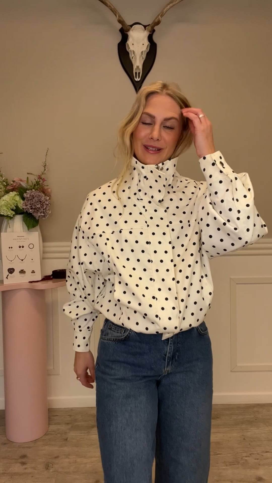Sød prikket jakke fra Neo Noir! Denne jakke er i en lækker og let kvaitet og er perfket her til sæsonen! Den er med en høj hals og har justerbar bund. Brug den til en strik og et par jeans for perfket look til hverdag!