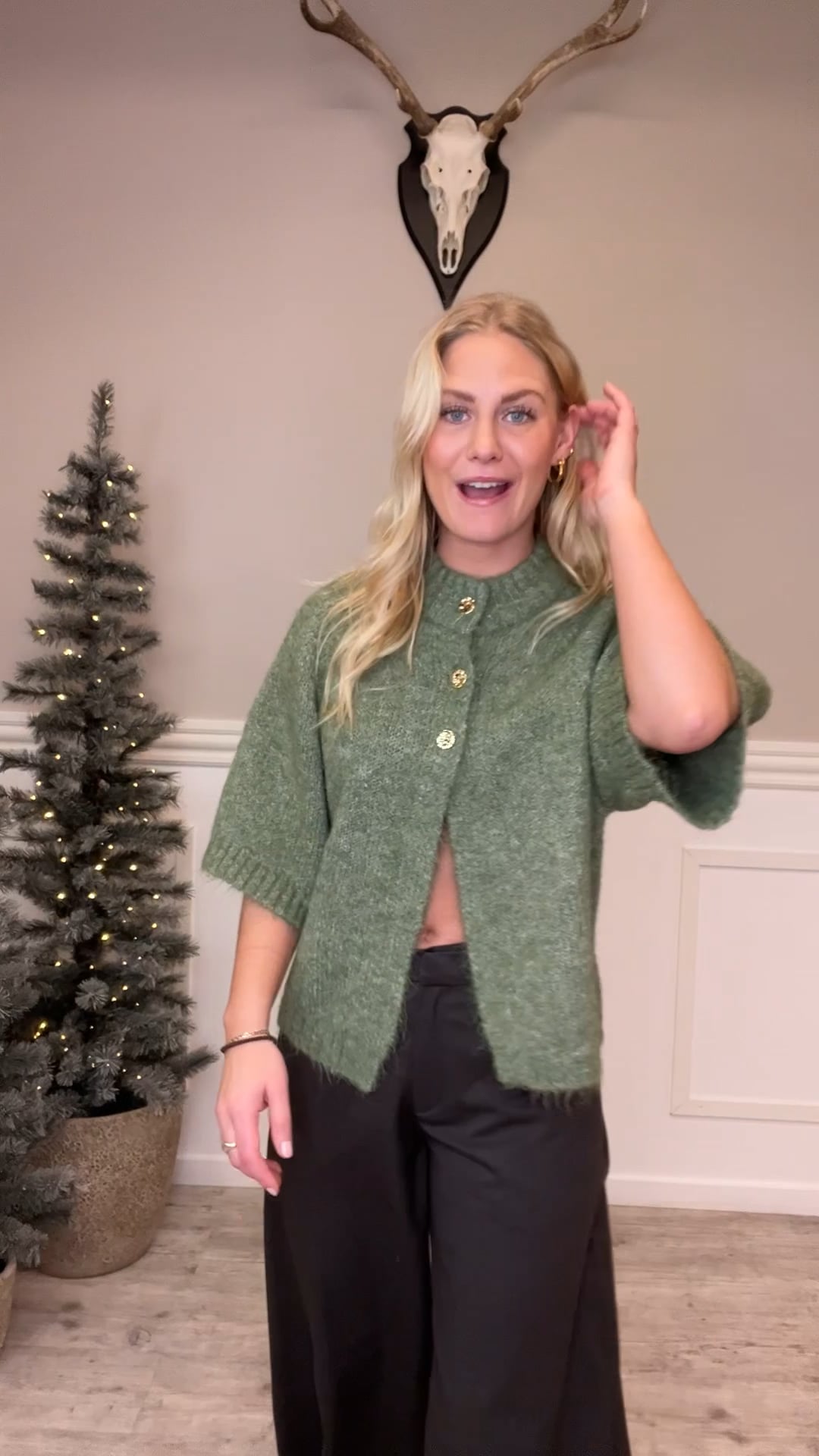 En fin cardigan fra Neo Noir. Denne cardigan er i en lækker blød kvalitet, med 3/4 del ærme og flotte knapper i toppen i grøn. Style den med en sød top, eller en lækker langærmet trøje. Findes i flere farver.