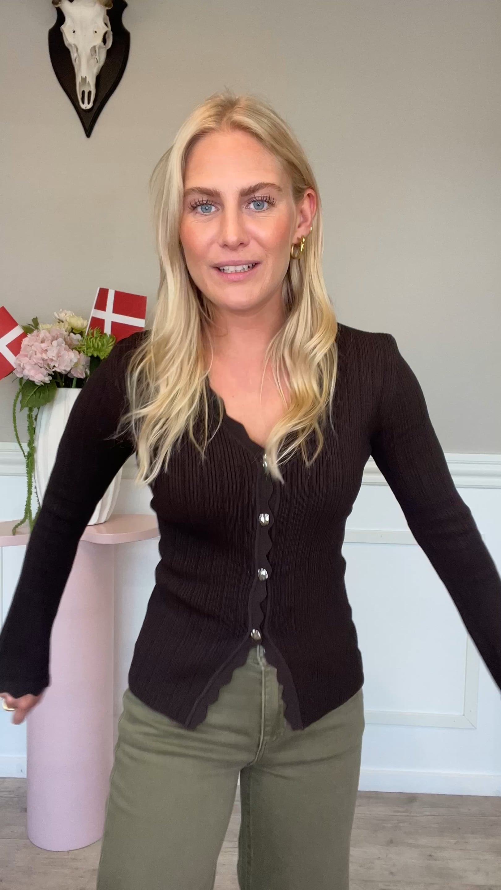 Den flotteste bluse fra Neo Noir! Denne bluse er i en tæt, men tynd rib/strik, som sætter sig super flot på kroppen. Den er lavet med en fin bølgekant og de flotteste bankede sølvknapper. Style den til et par jeans eller bukser!