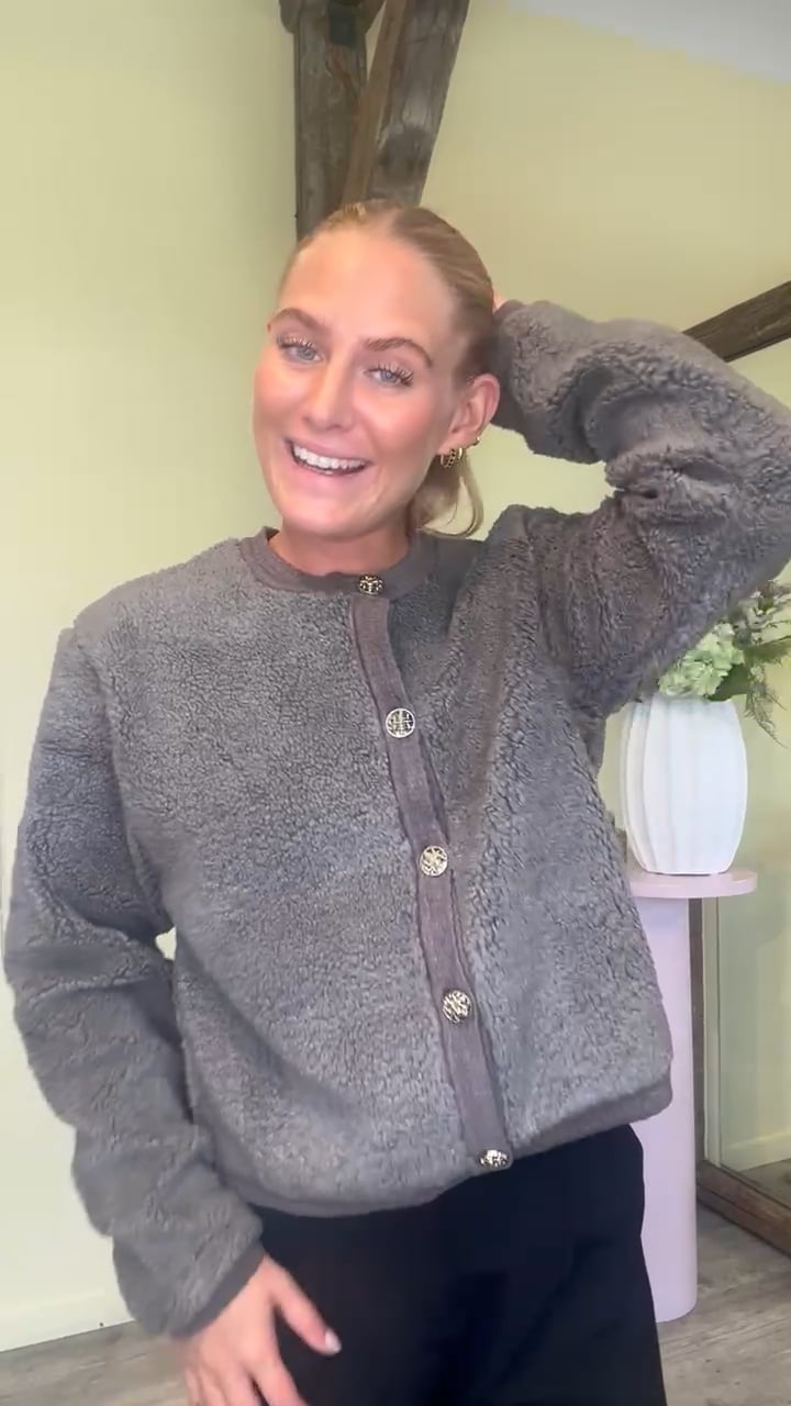 En super fin cardigan fra Neo Noir er landet i det blødeste teddy materiale. Denne cardigan er både behagelig og så er den også super fin med de flotte, detaljerede guldknapper og fine syede kanter! Denne kan altså sagtens bruges som en lidt varmere fest-jakke!