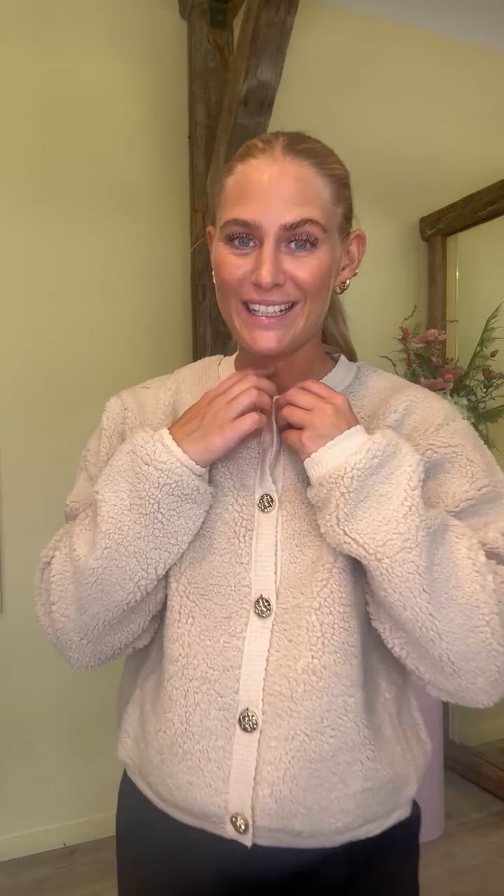En super fin cardigan fra Neo Noir er landet i det blødeste teddy materiale. Denne cardigan er både behagelig og så er den også super fin med de flotte, detaljerede guldknapper og fine syede kanter! Denne kan altså sagtens bruges som en lidt varmere fest-jakke!