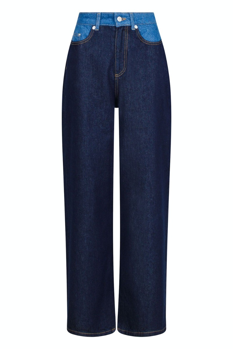 De sejeste jeans fra Neo Noir i den flotteste mørke blå farve med kontrast blå ved lommerne og toppen. Disse jeans har et sejt udtryk med to-delt-effekt i farven og i et løst snit der er lige op og ned i benene. De lukkes foran med knaplukning og har bæltestropper.
